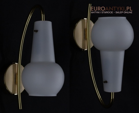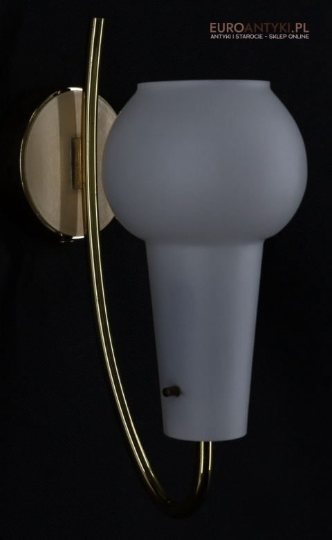 Kinkiet Retro/Vintage z Mosiądzu ze Szklanym Kloszem – Poł. XX w.