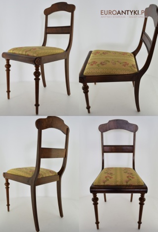 Krzesło to jest doskonałym przykładem mebla w stylu empire, który łączy elegancję z luksusem, przy jednoczesnym zachowaniu klasycznych proporcji i symetrii.