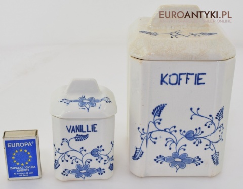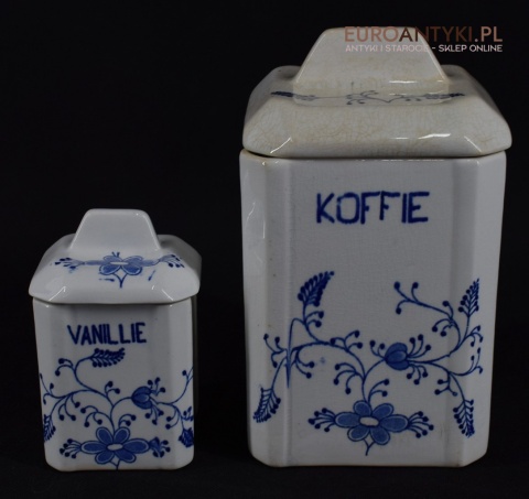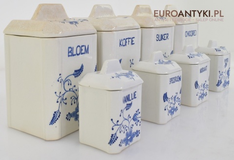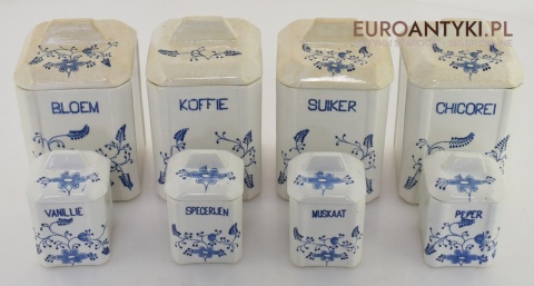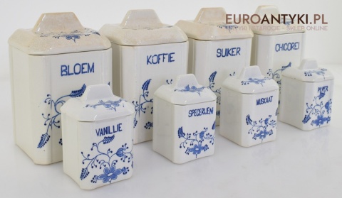 Komplet muzealnych naczynek kuchennych z porcelany.