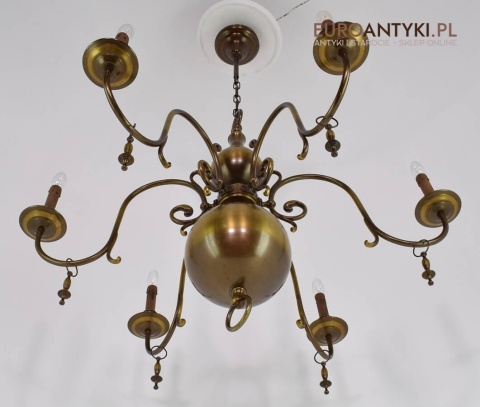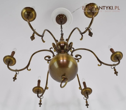 Stan żyrandola oceniam na bardzo dobry. Elektryka zmieniona na nową - sprawna. Ten nadzwyczajny żyrandol to prawdziwy antyk!