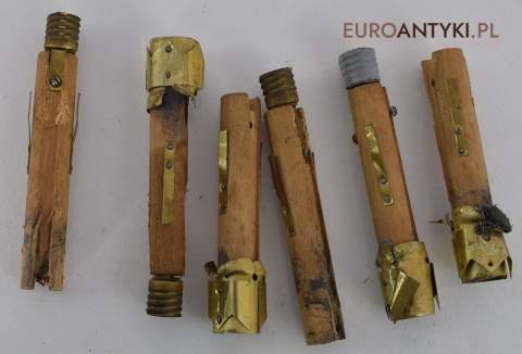 Żyrandol ma ciekawą historie bo został zdemontowany z likwidowanego kościoła w południowej Francji. Pochodzenie datujemy na lata 1920-30. Nasz elektryk wymienił elektrykę na nową. Zrobiliśmy kilka zdjęć oryginalnych zabytkowych gniazd które były użyte w tym żyrandolu. Kiedyś oprawki pod żarowki E14 robiono z drewna. Świadczy to o tym że ten stary żyrandol to autentyk a nie powojenna lub współczesna produkcja.