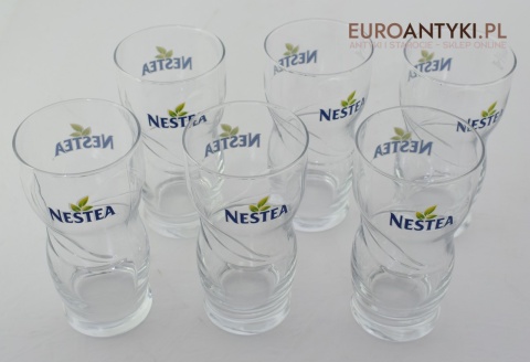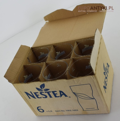 Wyjątkowy Zestaw 6 Kryształowych Szklanek do Napojów z Logiem NESTEA z Niemieckiej Huty RKL RUHR KRISTALL GLAS