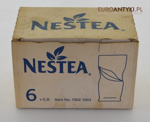 Prezentujemy wyjątkowy zestaw kryształowych szklanek do napojów o pojemności 0,3 l, ozdobionych logiem renomowanej światowej firmy NESTEA. Zestaw składa się z sześciu szklanek, wykonanych w niemieckiej hucie szkła RKL RUHR KRISTALL GLAS. Szklanki te są dostępne w oryginalnym opakowaniu, co czyni je kolekcjonerskim przedmiotem. Idealne do codziennego użytku oraz na specjalne okazje, szklanki te staną się ozdobą każdej kuchni i jadalni.