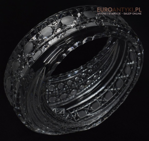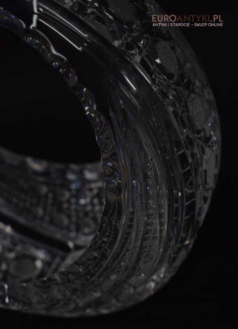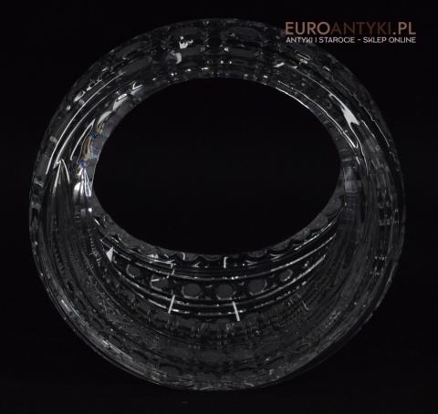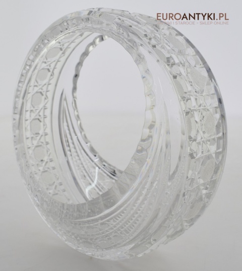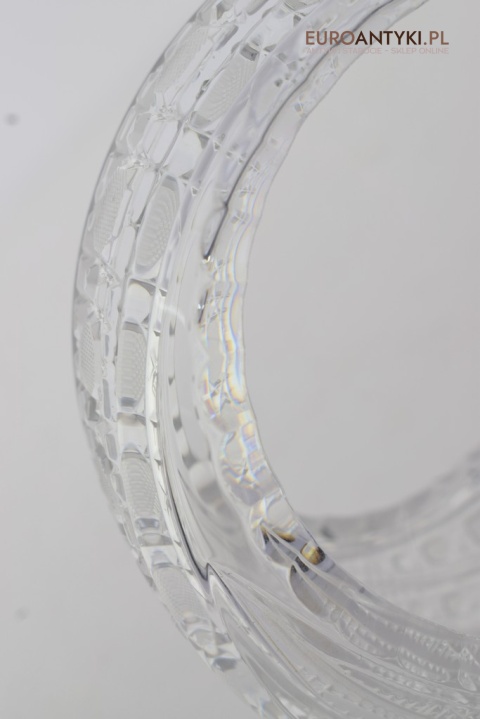 Oferujemy kryształowy okrągły koszyczek, który stanie się wyjątkowym elementem dekoracyjnym w każdym wnętrzu. Ten artystycznie wykonany przedmiot pochodzi z Francji z drugiej połowy XX wieku i zachwyca swoją estetyką oraz doskonałym stanem.