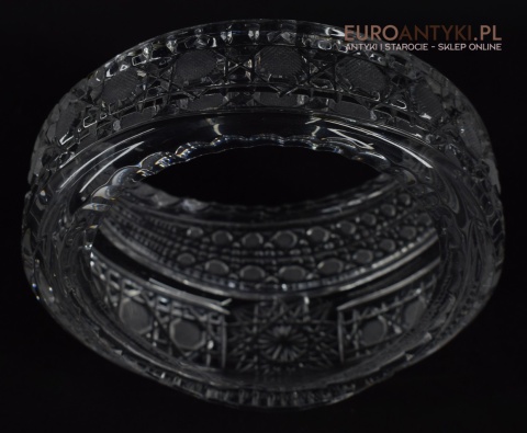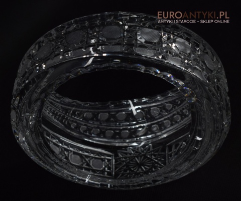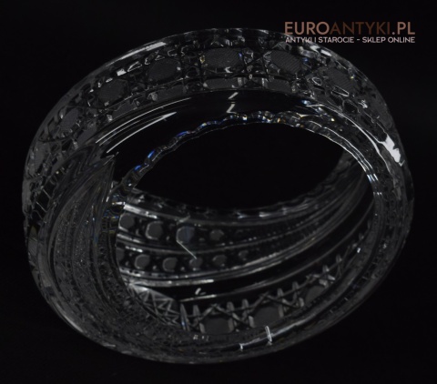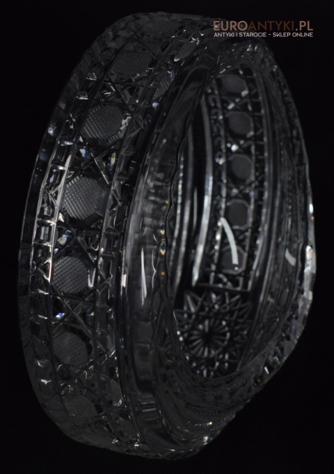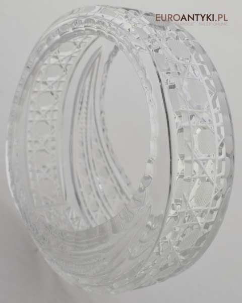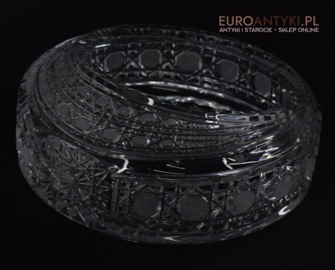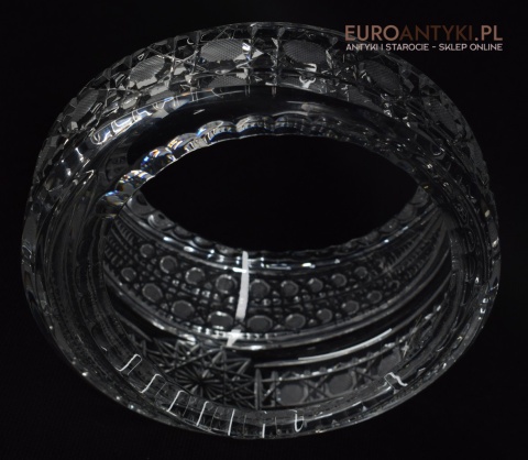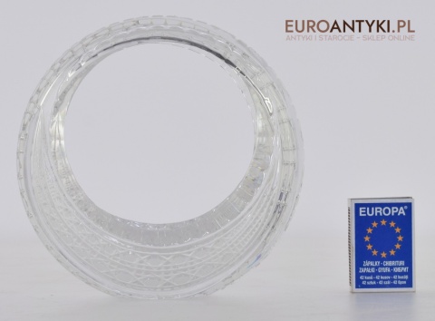Kryształowy koszyczek, który prezentujemy, to prawdziwe dzieło sztuki użytkowej. Jego krystalicznie czysta powierzchnia jest misternie szlifowana, tworząc efektowne wzory, które pięknie mienią się pod wpływem światła wszystkimi kolorami tęczy. Dzięki swojej formie, koszyczek idealnie nadaje się do eksponowania drobnych przedmiotów, takich jak biżuteria, cukierki, czy też jako elegancki pojemnik na drobiazgi w łazience lub salonie.