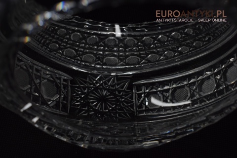 Całość bez uszkodzeń. Przedmiot kompletny, profesjonalnie wyczyszczony. Ten kryształowy koszyczek to nie tylko praktyczny dodatek, ale również piękny element dekoracyjny, który doda blasku każdemu wnętrzu. Jego wyrafinowany design i funkcjonalność sprawiają, że jest to doskonały wybór dla osób ceniących sobie elegancję i styl.