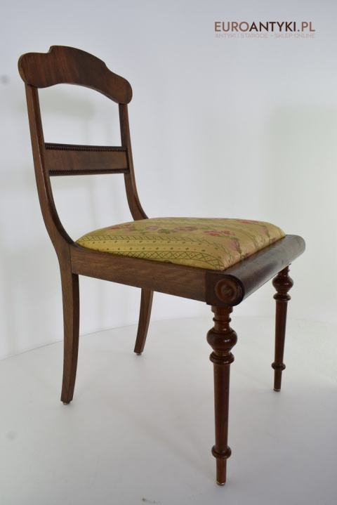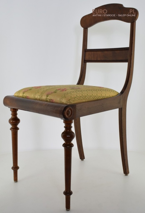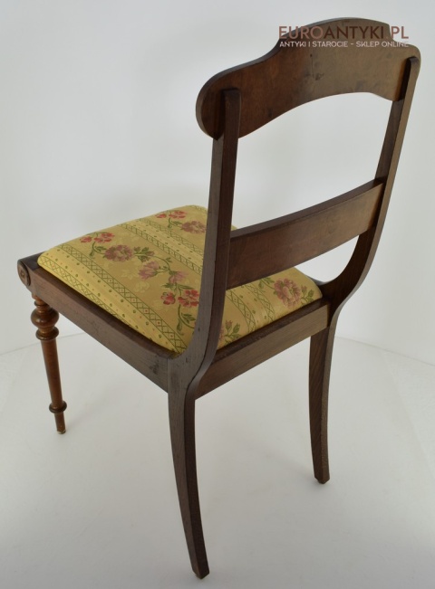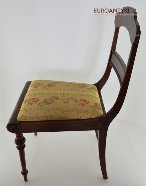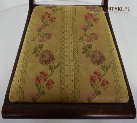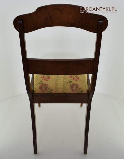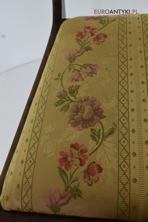 Klasyczny design: Proste, ale eleganckie linie, wyszukane formy oparć oraz delikatne zdobienia sprawiają, że krzesła te są idealnym wyborem zarówno do tradycyjnych, jak i nowoczesnych wnętrz. Siedzenia obite subtelną tapicerką z kwiatowymi motywami dodają meblom niepowtarzalnego charakteru.