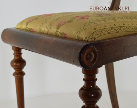 Wysoka jakość wykonania: Krzesła w stylu Biedermeier charakteryzują się solidnym wykonaniem z wysokiej jakości drewna, które z biegiem lat zyskuje na wartości. Precyzyjnie toczone nogi i starannie dopracowane detale świadczą o mistrzowskim rzemiośle.