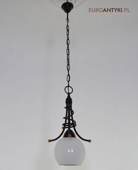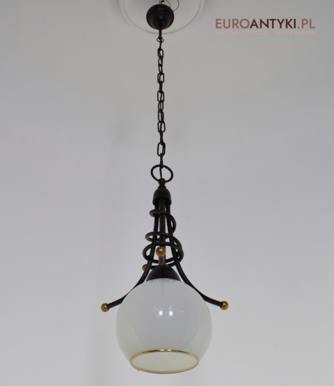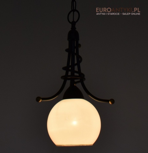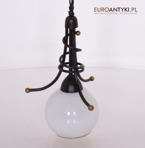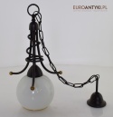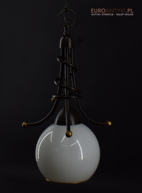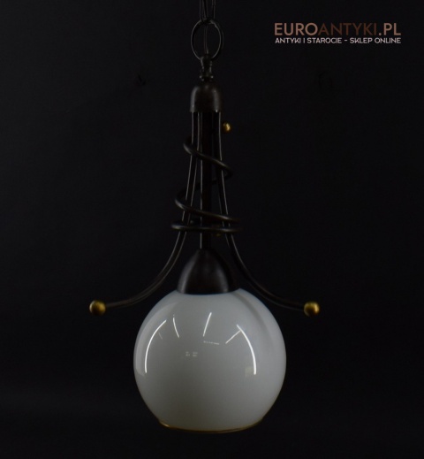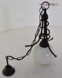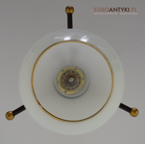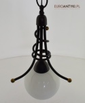 Całość bez uszkodzeń. Przedmiot kompletny, profesjonalnie wyczyszczony. Elektryka sprawna - sprawdzana przez naszego fachowca. Standardowe gniazda elektryczne typu E27. Obecnie można kupić żarówki LED o różnym natężeniu, różnej barwie światła i różnym wyglądzie. Nawet mała żarówka może być dużej mocy i nie będzie pobierać wielu watt, przez co nie przegrzewa i nie uszkodzi kabli elektrycznych. Wszystkie lampy wysyłamy bez żarówek. Żarówki tego typu są łatwo dostępne w sklepach elektrycznych lub w internecie.