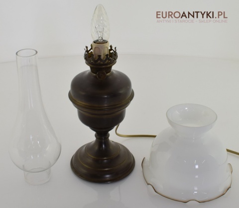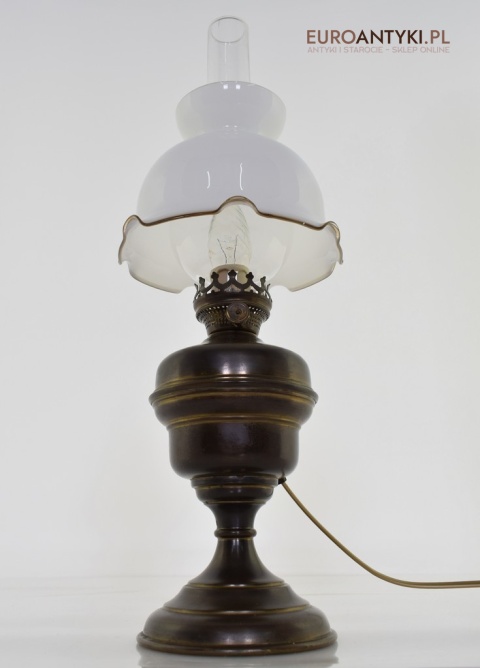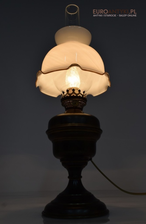 Lampa naftowa z 1900 roku przerobiona na elektryczną.