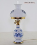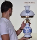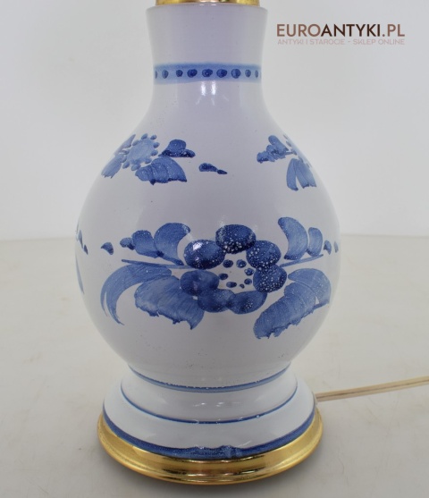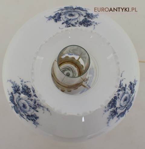 Lampa stołowa biało niebieska z kloszem. Oświetlenie cottage, rustyk.