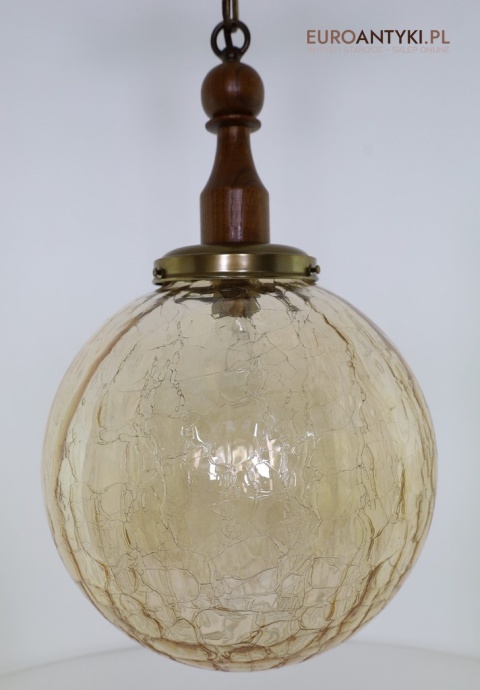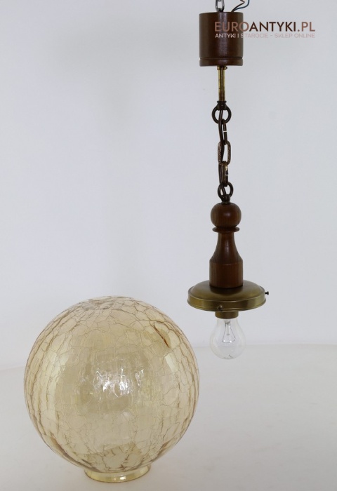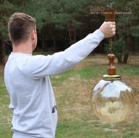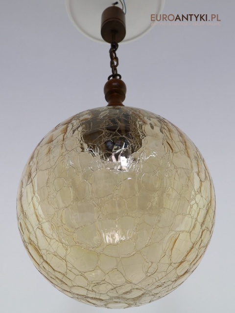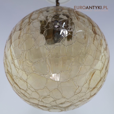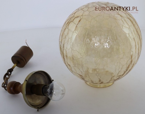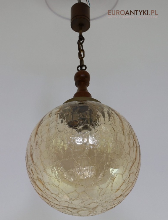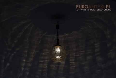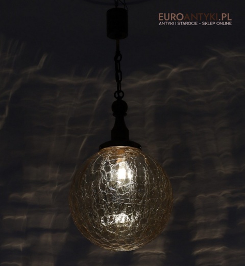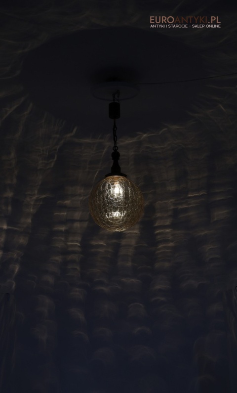Wykonanie i unikalność: Szklana kula o efekcie lodowego szkła jest rzadko spotykana, co czyni tę lampę przedmiotem unikalnym. To produkt z minionej epoki, który obecnie już nie jest wytwarzany, dlatego idealnie wpisuje się w ofertę kolekcjonerskich dodatków dla miłośników antyków i stylowych wnętrz.