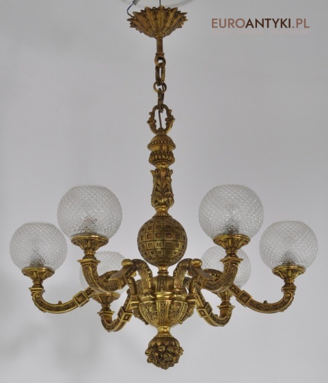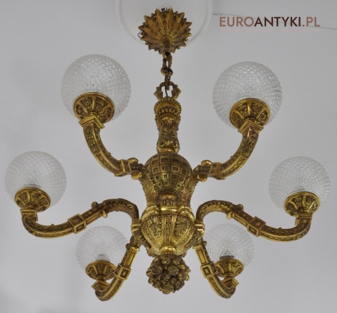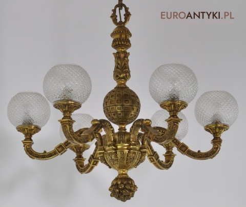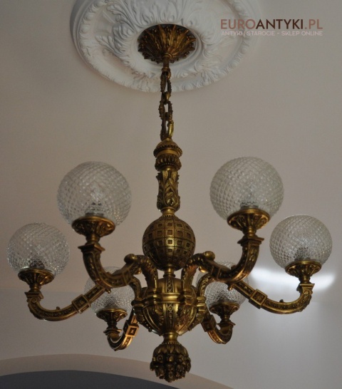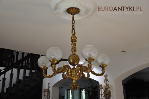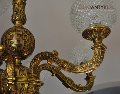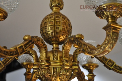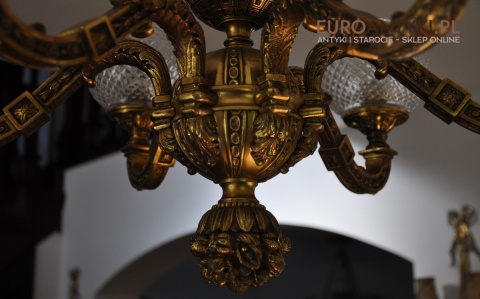 Ludwik XVI pałacowy żyrandol pozłacany. Styl francuski. Antyk Unikat.