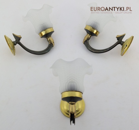 Przedstawiamy piękne mosiężne kinkiety w stylu retro, sprowadzone prosto z Francji. Ten wyjątkowy komplet lamp ściennych z końca XX wieku łączy klasyczny design z funkcjonalnością, dzięki czemu doskonale wpisuje się zarówno w tradycyjne, jak i nowoczesne wnętrza. Kinkiety vintage zachwycają unikalnym połączeniem ciemnego i jasnego mosiądzu z mlecznymi, szklanymi kloszami w idealnym stanie.