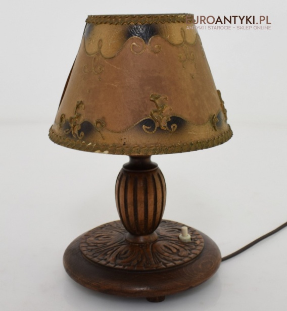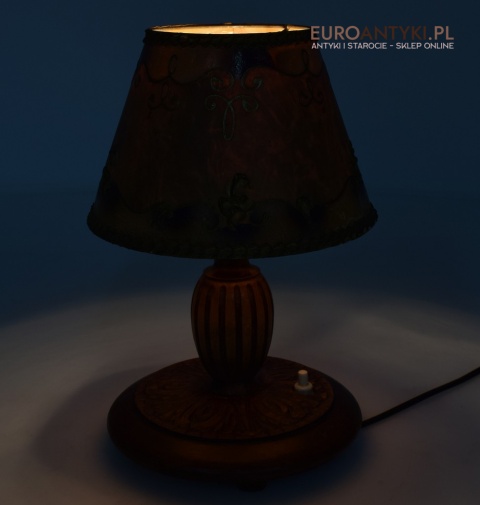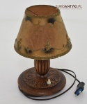 Malutka vintage lampka góralska na stolik. Antyczne oświetlenie.