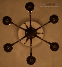 Całość bez uszkodzeń. Przedmiot kompletny. Elektryka sprawna. Standardowe gniazda elektryczne typu E14. Obecnie można kupić żarówki LED o różnym natężeniu, różnej barwie światła i różnym wyglądzie. Nawet mała żarówka może być potężnej mocy i nie będzie pobierać wielu watt, przez co nie przegrzewa i nie uszkodzi kabli elektrycznych. Wszystkie lampy wysyłamy bez żarówek.