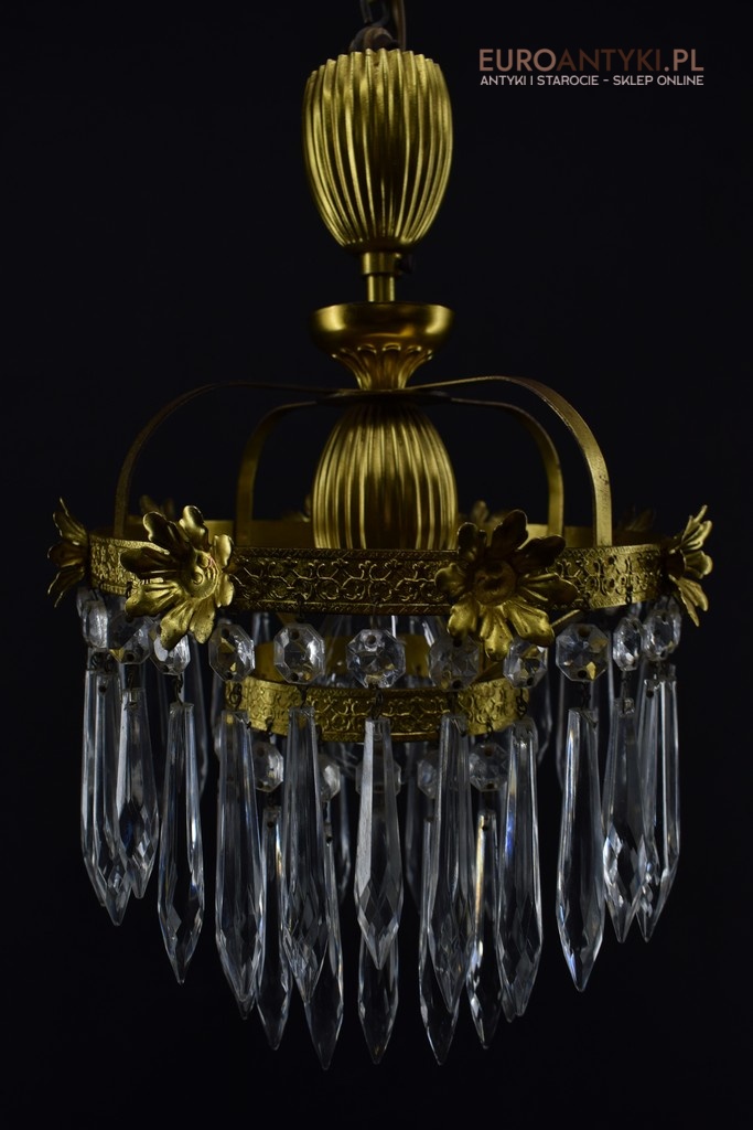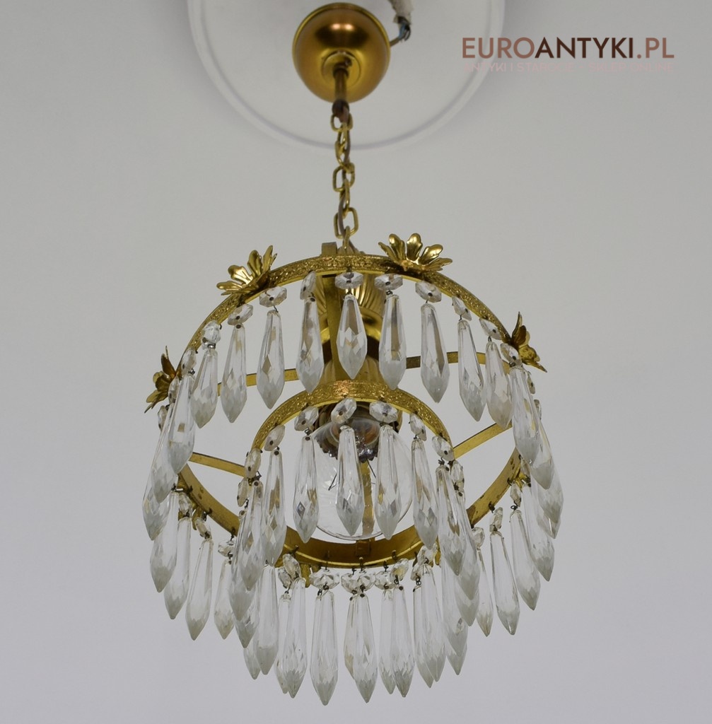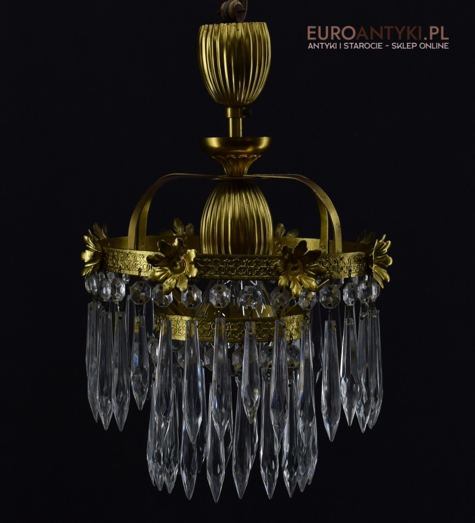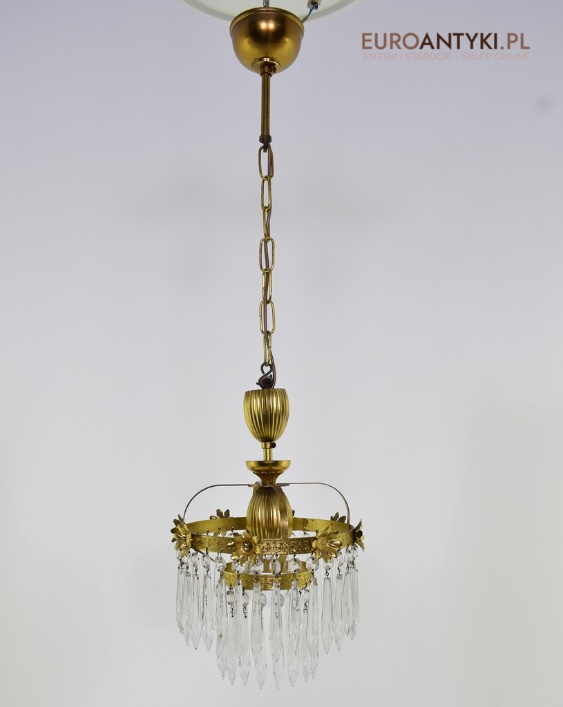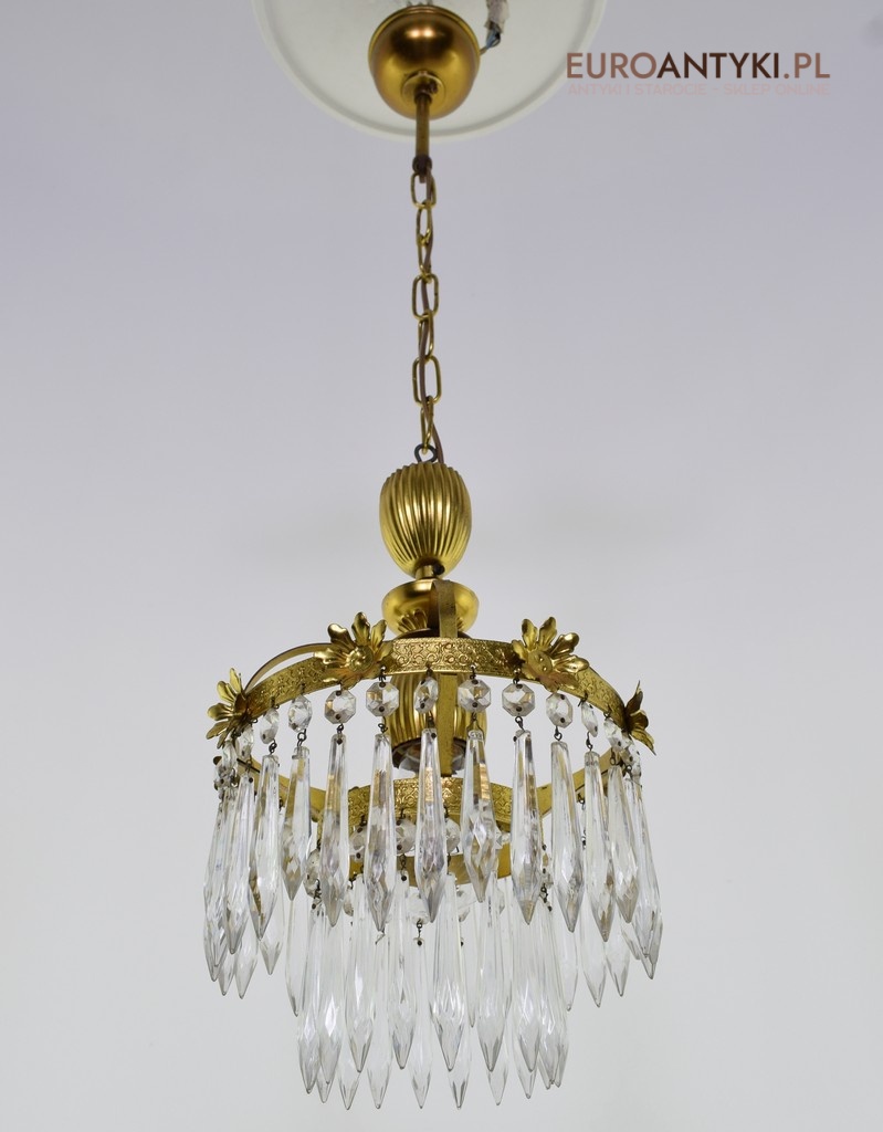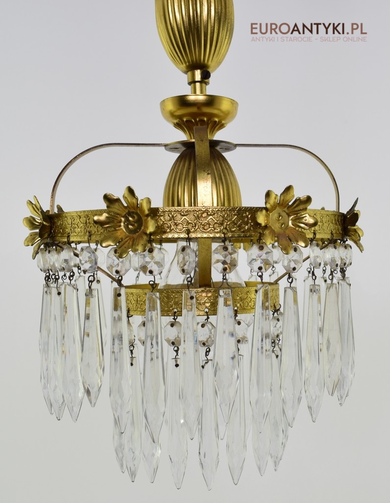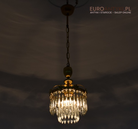 Mały mosiężny żyrandol kryształowy. Lampy antyczne.