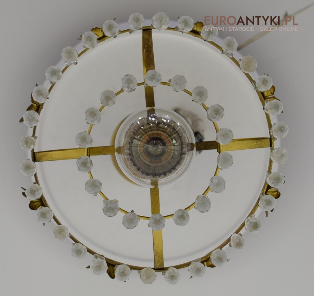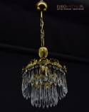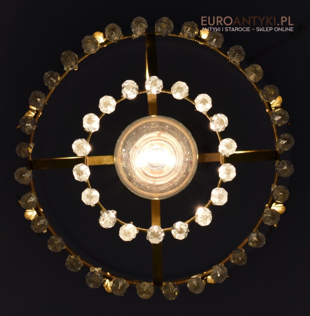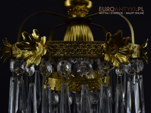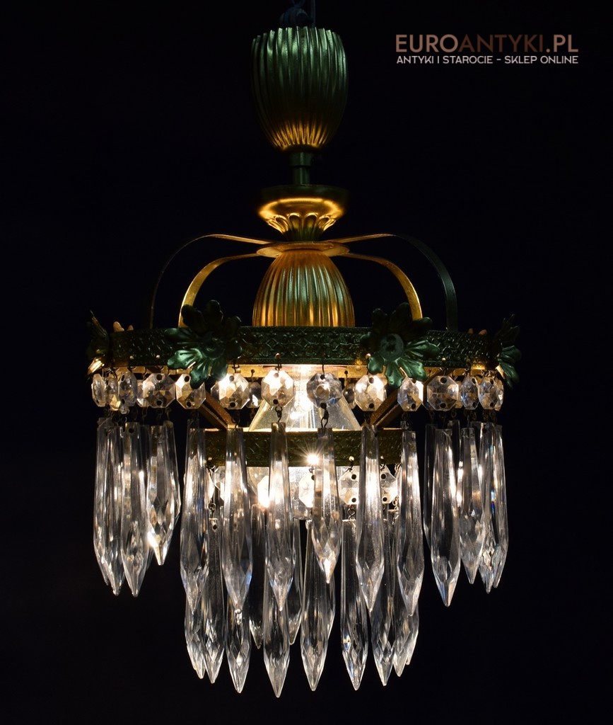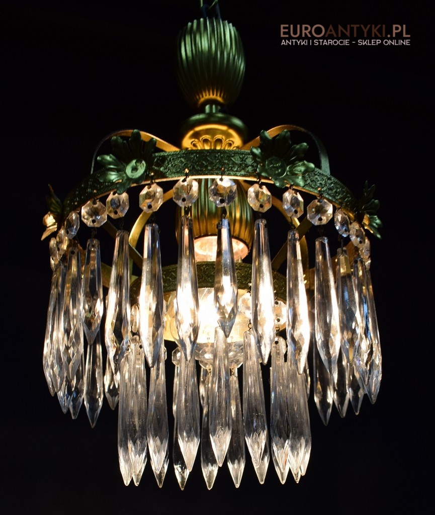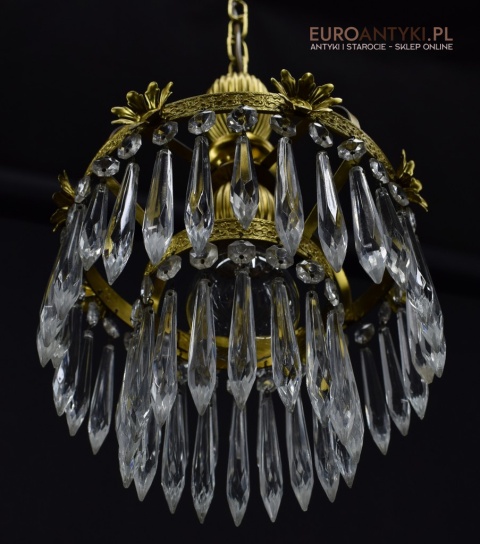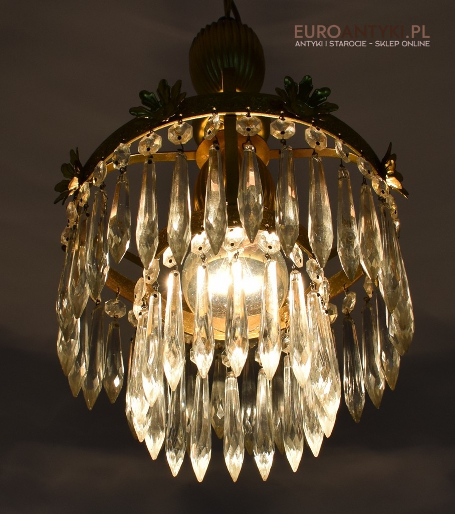 Mały mosiężny żyrandol kryształowy. Lampy antyczne.