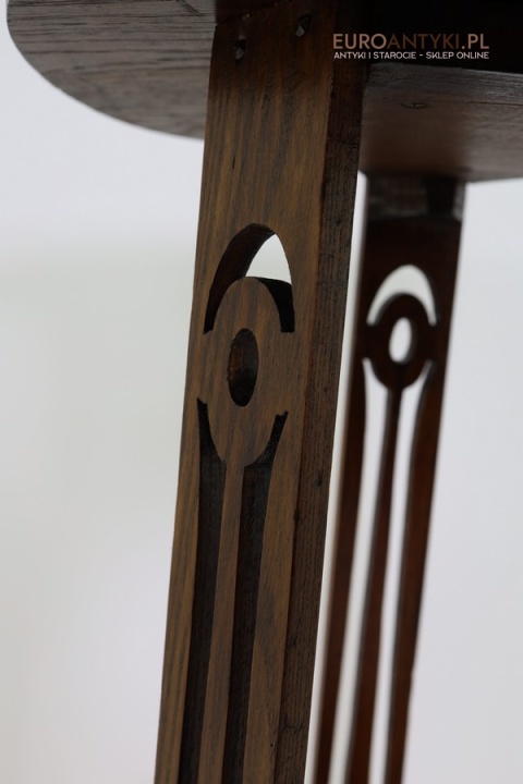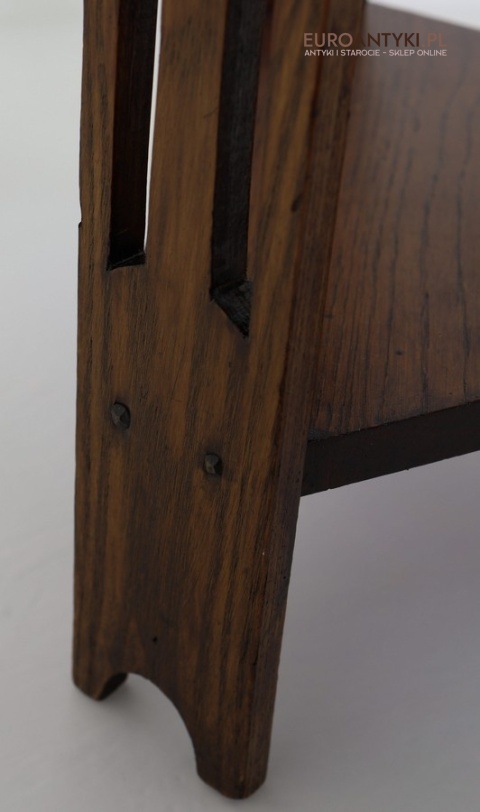 Stolik wykonany z litego drewna dębowego lub orzechowego, pięknie zachowany naturalny rysunek słojów. Solidne i estetyczne wykonanie z dbałością o każdy detal, zgodne z charakterem stylu secesyjnego, który łączy funkcjonalność z dekoracyjnością.