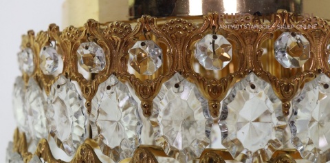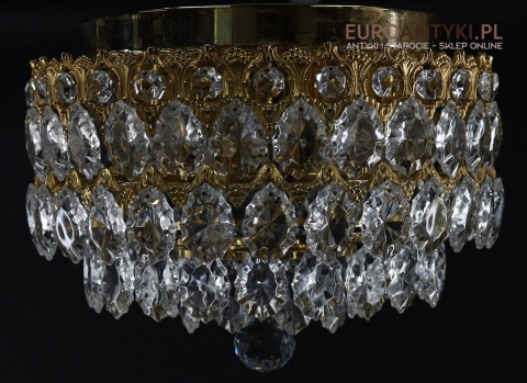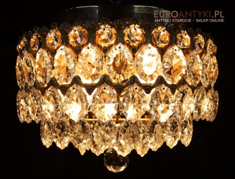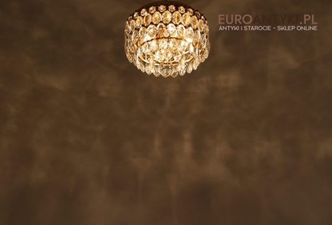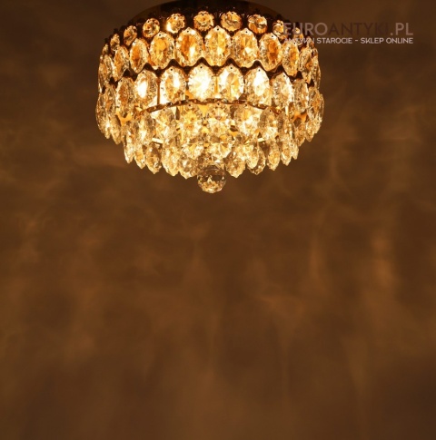 Mały stylowy plafon vintage z mosiądzu i kryształów – luksusowa dekoracja do salonu, holu lub sypialni - 6 żarówek!