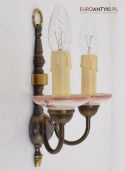 Sprowadzony z Austrii. Pochodzi z około 1960-70 roku. Wykonany z masywnego brązu + 2 ceramiczne talerzyki z rasowymi prowansalskimi zdobieniami. Z tyłu kinkietu jest specjalny otworek do zawieszenia na ścianie.