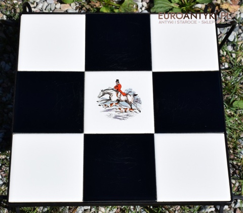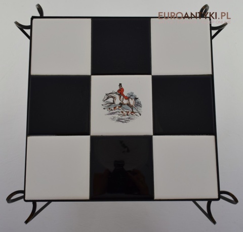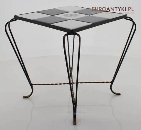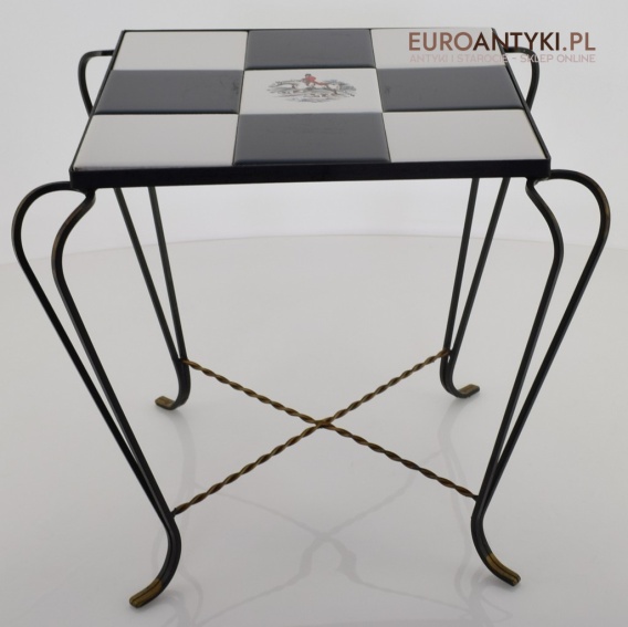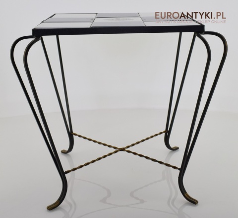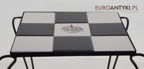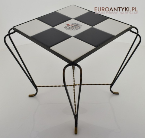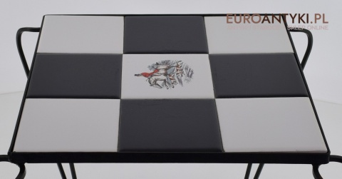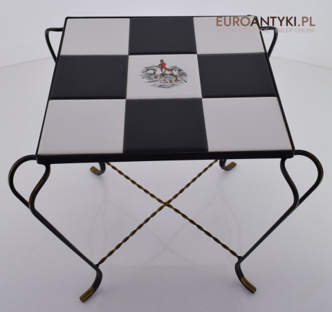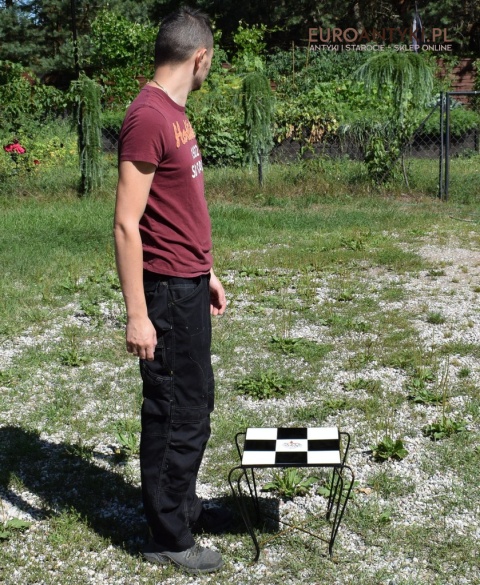 Mały stolik z kafelkami szachownicy. Stoliczek retro vintage.