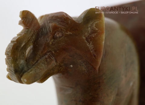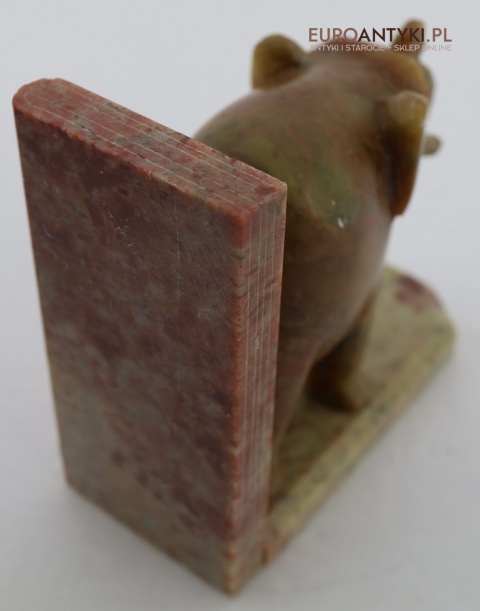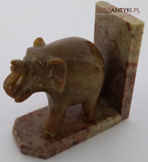 Przedstawiamy niezwykle efektowną parę podpórek do książek, wykonaną z naturalnego marmuru, z dekoracyjnymi figurkami słoni – symboli mądrości, siły i dostojeństwa. Przedmiot pochodzi z połowy XX wieku i idealnie oddaje styl orientalny, który wprowadza do wnętrz nutę egzotyki i klasycznego uroku. Tego typu dodatki były popularne w domach kolekcjonerów i podróżników, stanowiąc symboliczny element świadczący o dobrym guście i zainteresowaniu sztuką azjatycką.