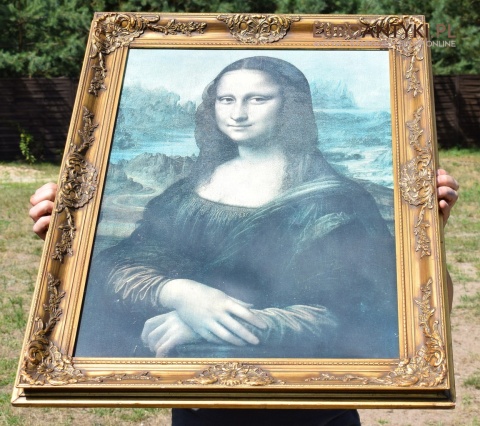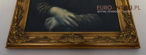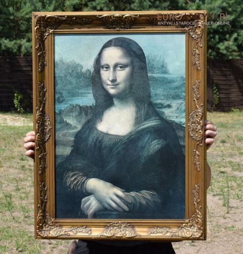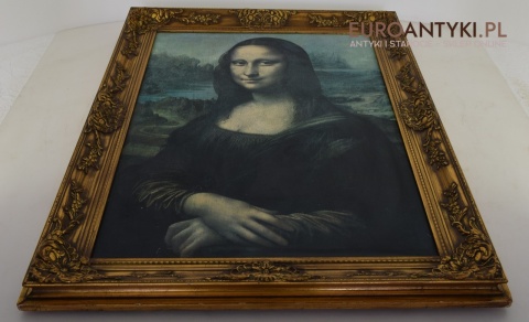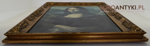 Mona Lisa stary obraz w złotych drewnianych ramach.