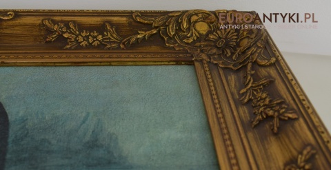 Stary obraz w drewnianych ramach został sprowadzony z Austrii. Pochodzi z lat 1960. Reprint na płótnie. BEZ USZKODZEŃ!