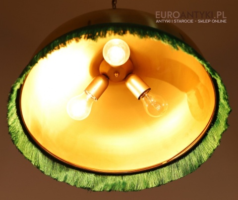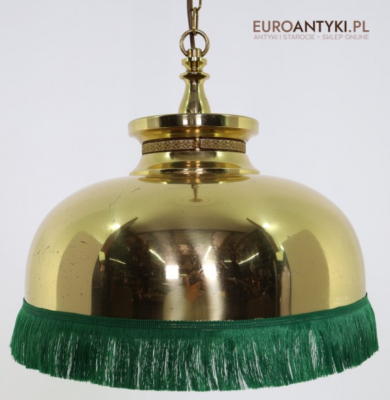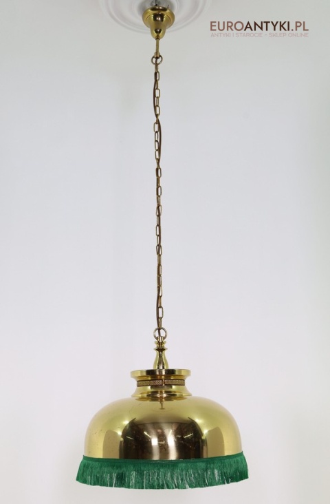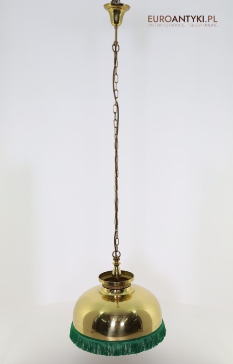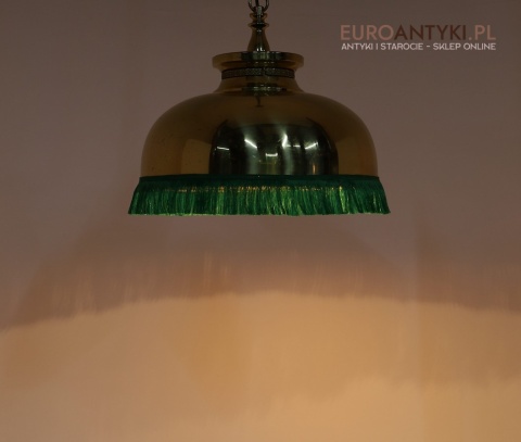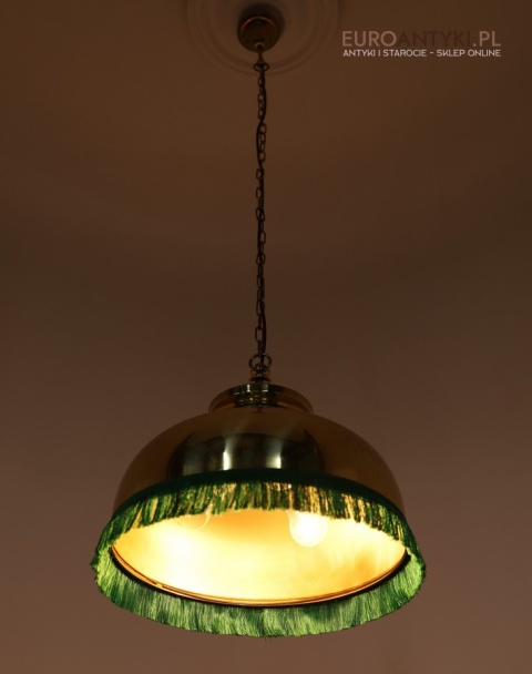 Elegancka forma – półkulisty klosz z dekoracyjną zieloną frędzlą przywodzi na myśl stylowe lampy do gry w karty, jakie zdobiły wnętrza ekskluzywnych salonów i klubów.