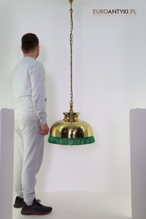 Mosiężna lampa sufitowa vintage nad stolik do kart - mocne punktowe oświetlenie retro
