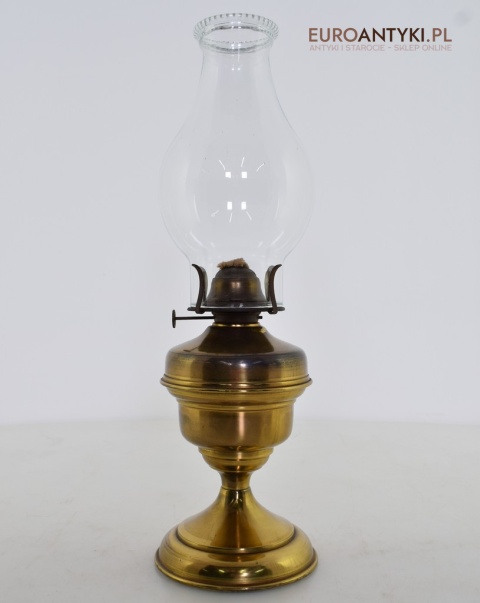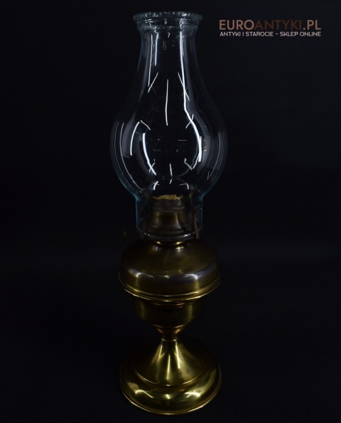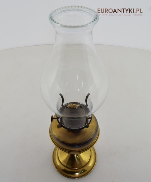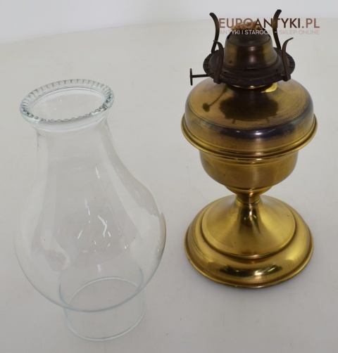 Sprowadzona ze Szwajcarii. Wykonana z mosiądzu. Klosz szklany. Baniak na naftę nie przecieka.