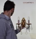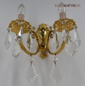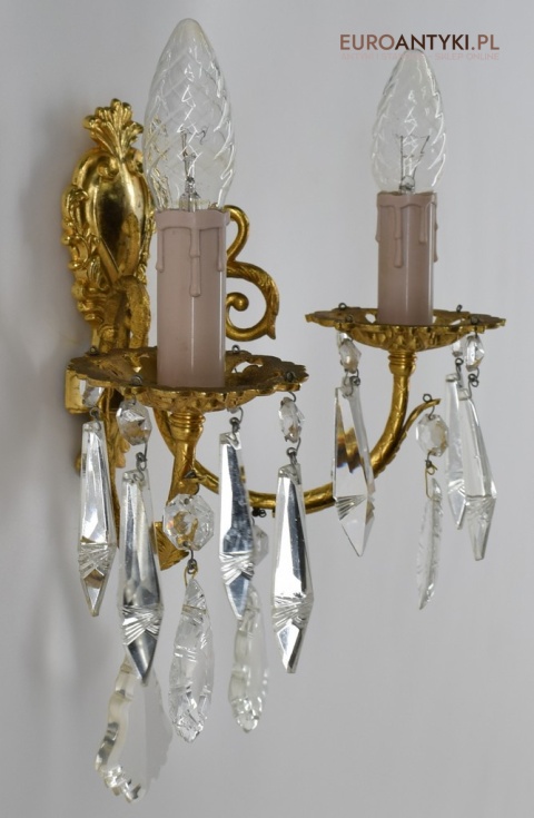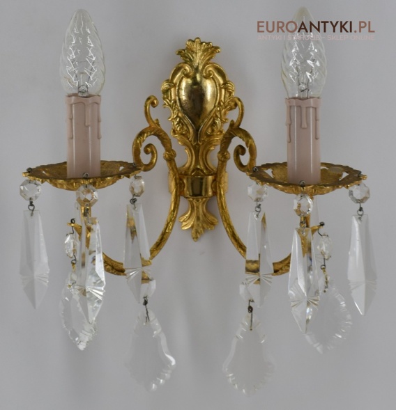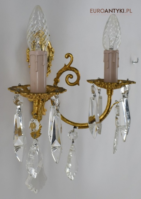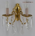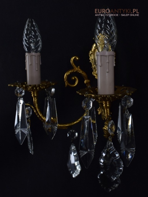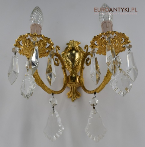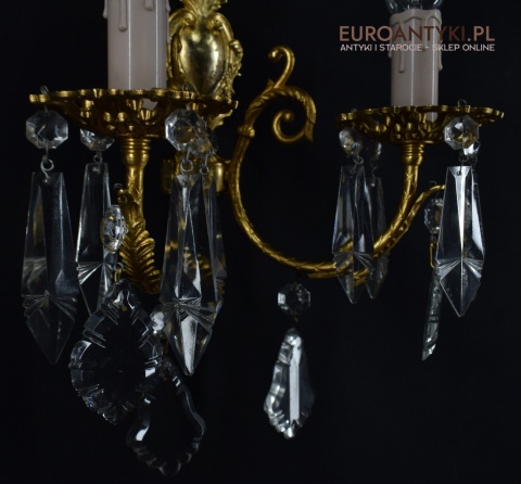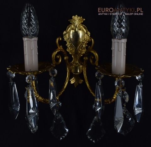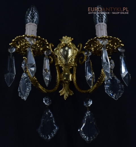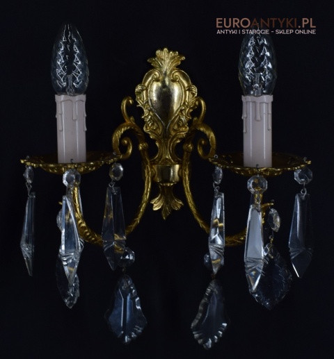 Bogaty kinkiet mosiężny z prawdziwymi kryształami.