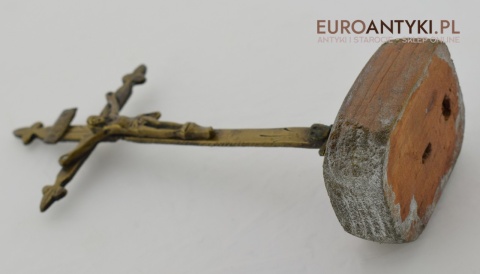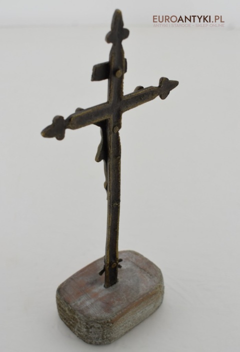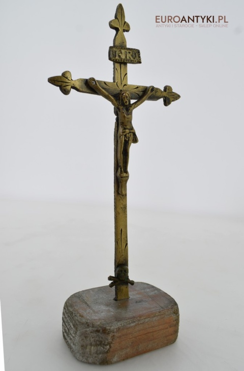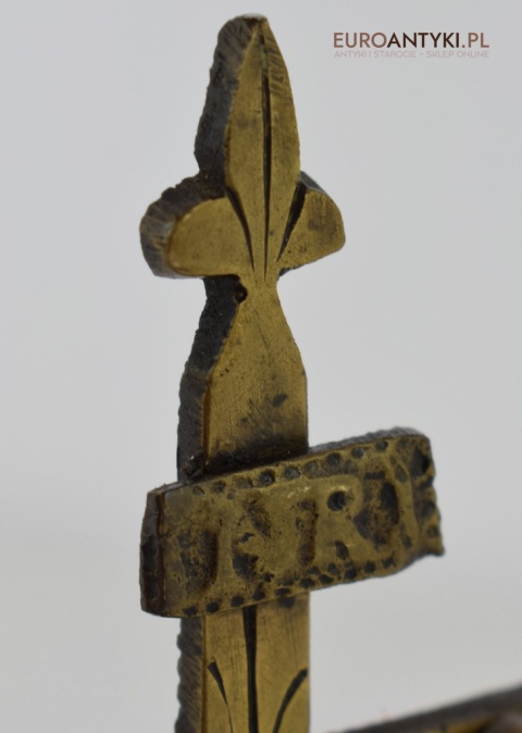 Przedstawiamy Państwu mosiężny krzyżyk okopowy osadzony na solidnej drewnianej podstawce, pochodzący z okresu międzywojennego. Ten wyjątkowy przedmiot jest autentyczną pamiątką z tamtych czasów, reprezentującą prostotę i duchowe znaczenie dla żołnierzy, którzy nosili takie krzyżyki jako symbol wiary i ochrony w trudnych warunkach wojennych. Wykonany z mosiądzu, krzyżyk posiada klasyczny, surowy styl, który odzwierciedla realia i estetykę tamtego okresu.