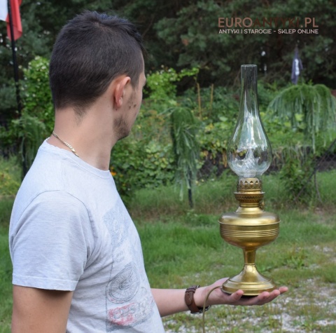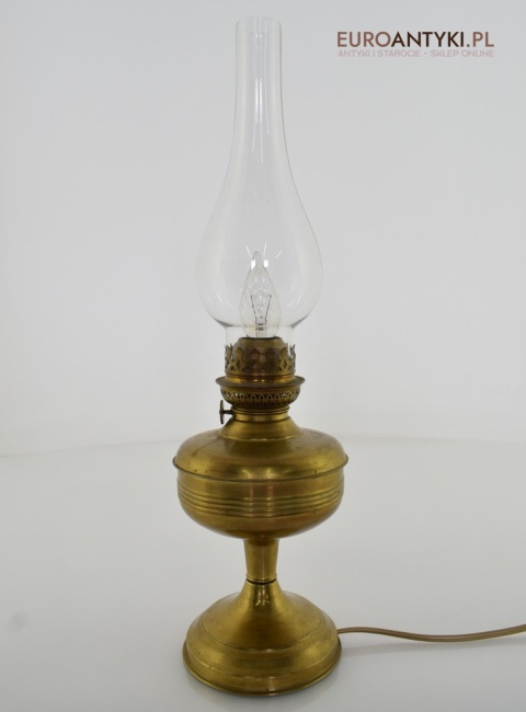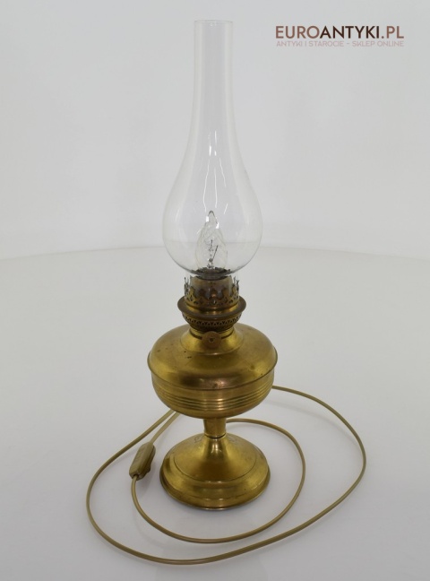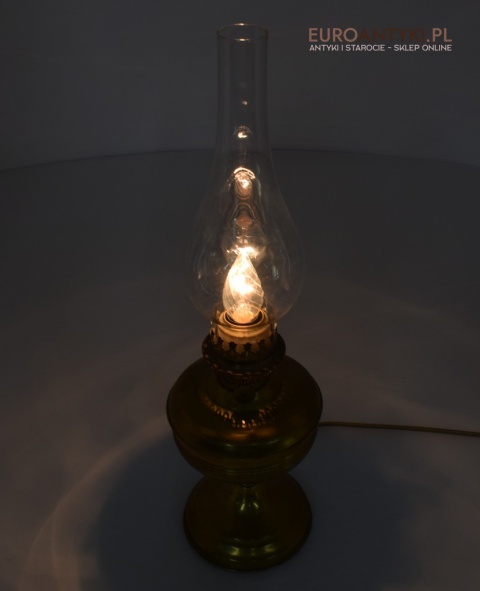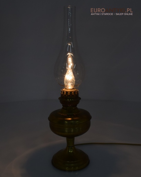 Muzealna lampa naftowa przerobiona na elektryczną. Antyki.