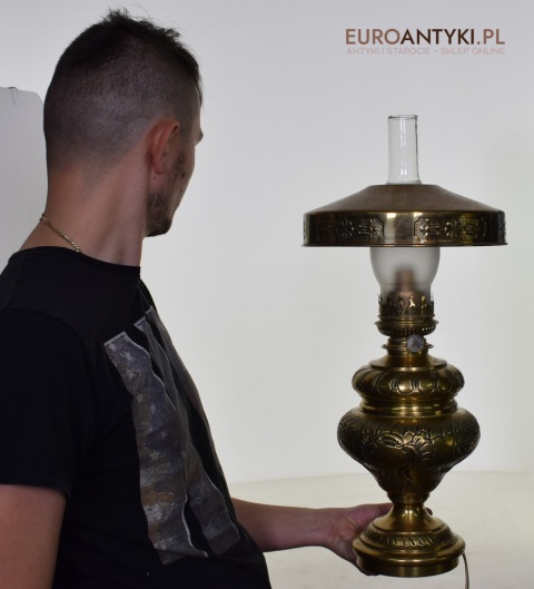 Muzealna lampa naftowa z lat 1900. Elektryczna. Unikatowe oświetlenie.