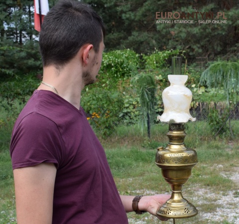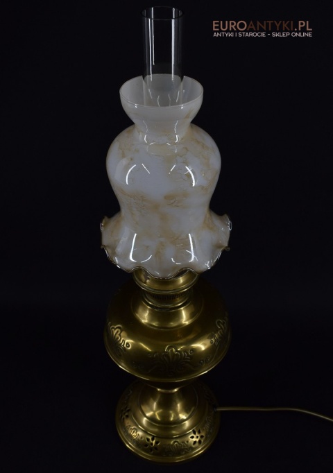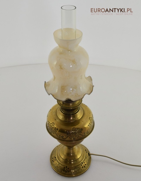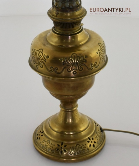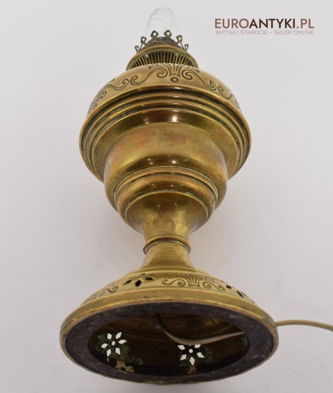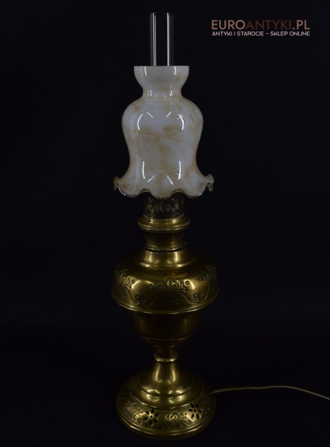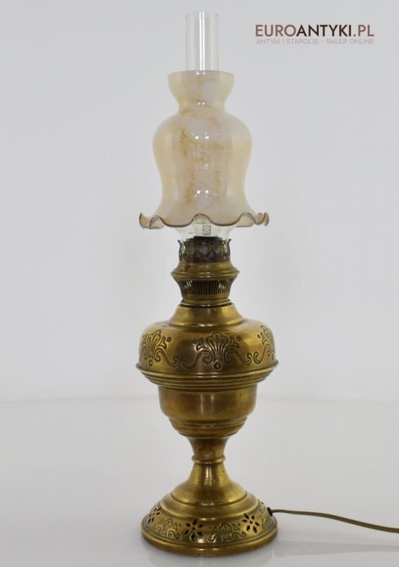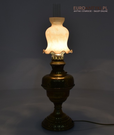 Muzealna lampa naftowa z lat 1900 przerobiona na elektryczną.