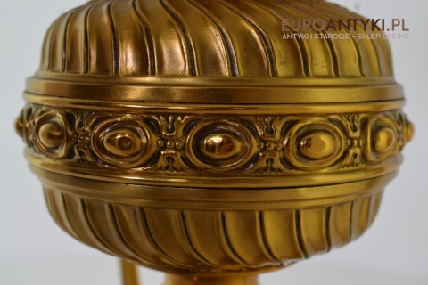 Całość bez uszkodzeń. Przedmiot kompletny, profesjonalnie wyczyszczony. Elektryka sprawna - sprawdzana przez naszego fachowca. Obecnie można kupić żarówki LED o różnym natężeniu, różnej barwie światła i różnym wyglądzie. Nawet mała żarówka może być dużej mocy i nie będzie pobierać wielu watt, przez co nie przegrzewa i nie uszkodzi kabli elektrycznych. Wszystkie lampy wysyłamy bez żarówek. Żarówki tego typu są łatwo dostępne w sklepach elektrycznych lub w internecie.