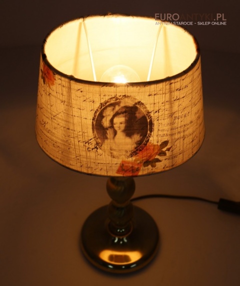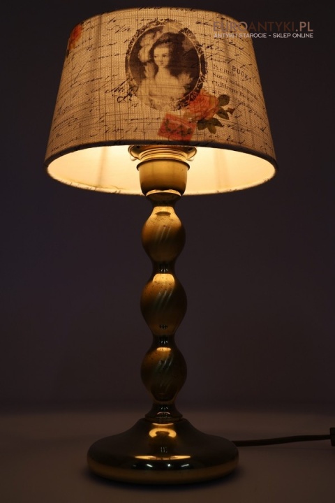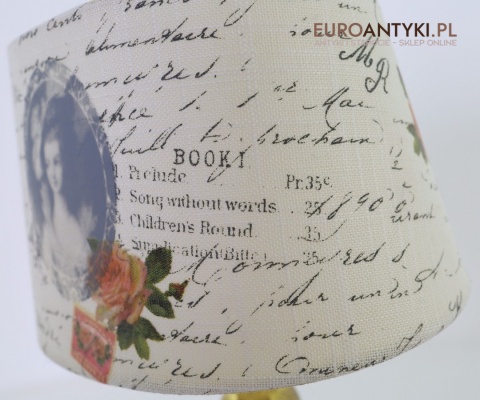 Nostalgiczna lampka vintage z abażurem w stylu francuskim i mosiężną podstawą