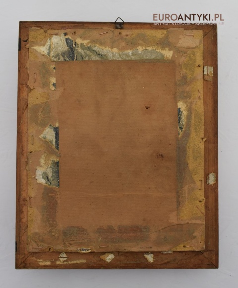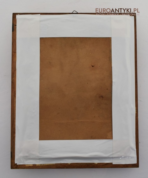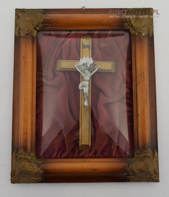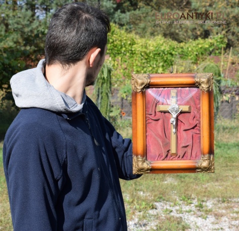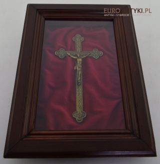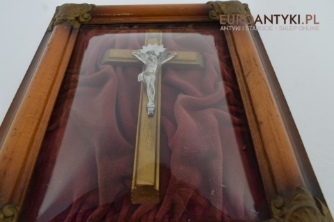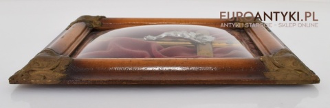 Zabytkowy obraz z Krzyżem pod szkłem wypukłym.
