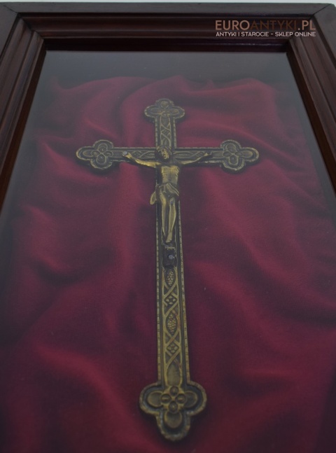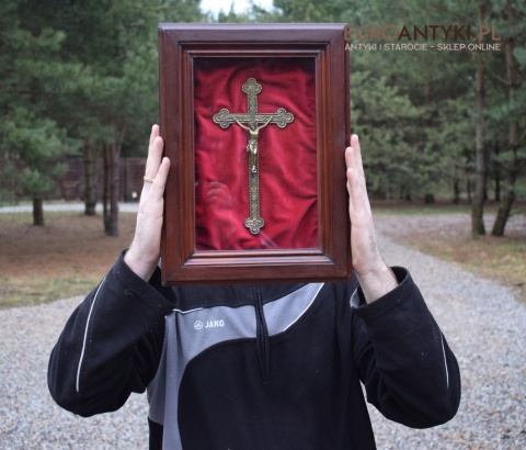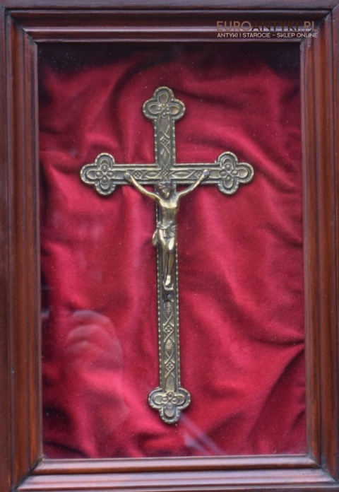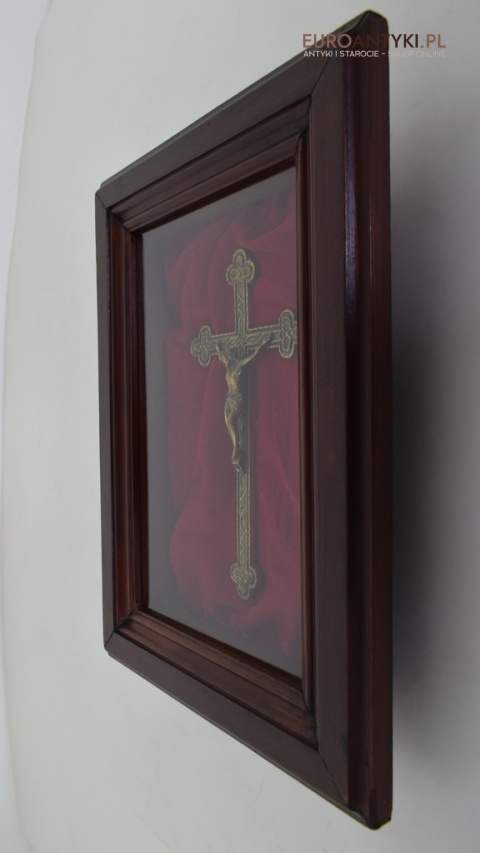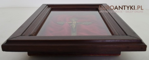 Obraz z Jezusem w szklanych ramach. Kościelne antyki i dewocjonalia.