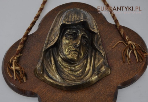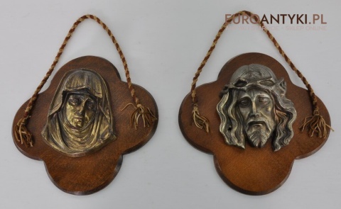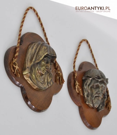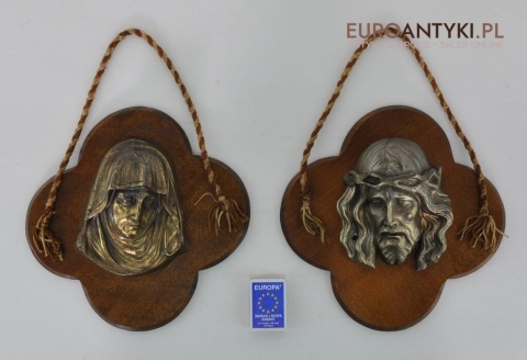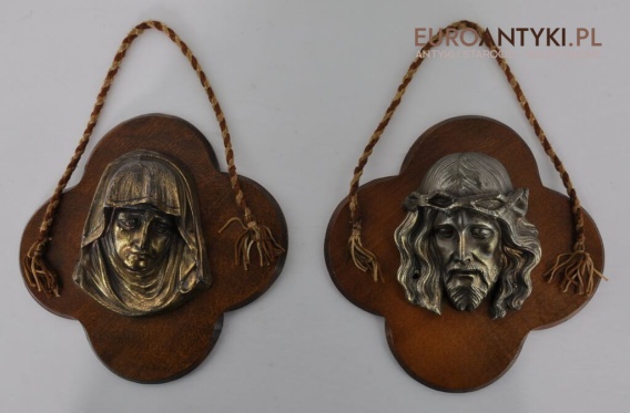 Twarz Chrystusa i Matki Boskiej wykonane z jakiegoś metalu (stop z mosiądzem )