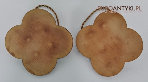 Stare obrazki zawieszane na ścianie wykonane z drewna.
