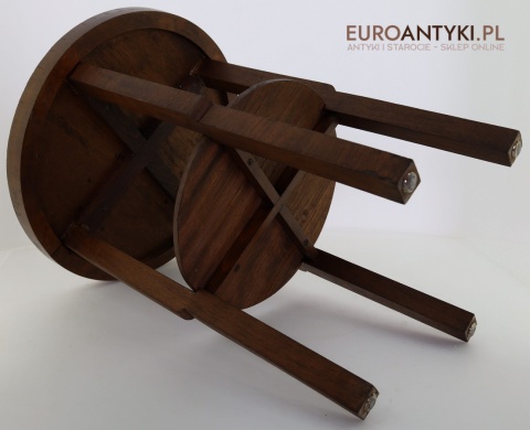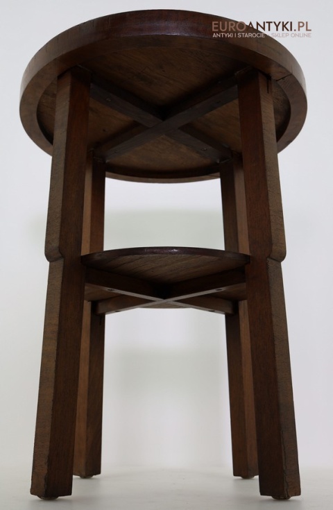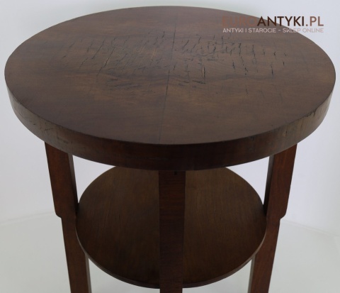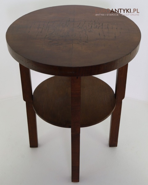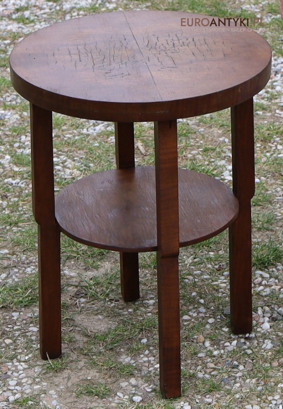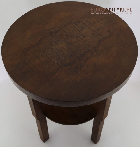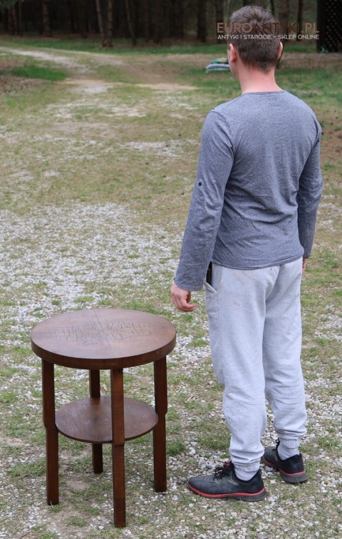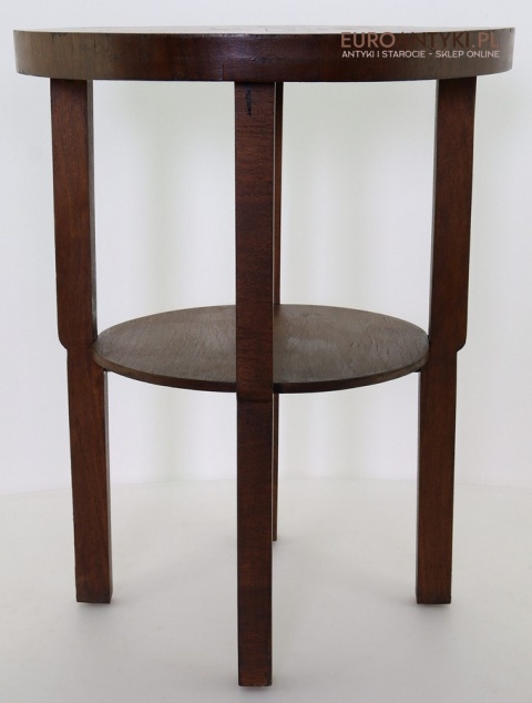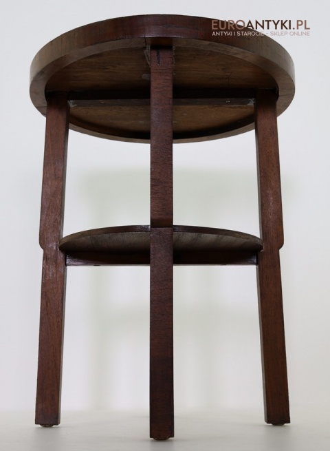 Prezentujemy oryginalny, okrągły drewniany stolik pomocniczy w stylu modernistycznym, pochodzący z Francji, z lat 1930–40. To przykład klasycznego wzornictwa okresu międzywojennego – prostota, funkcjonalność oraz doskonała jakość wykonania. Mimo minimalistycznej formy stolik zachwyca detalami i szlachetnym charakterem drewna.
