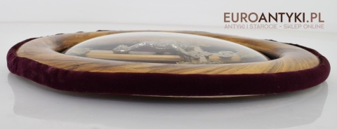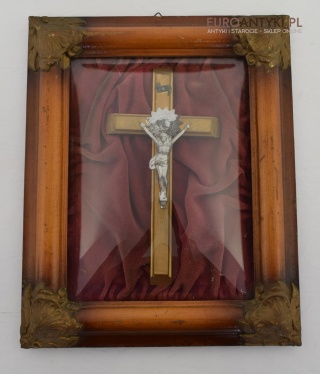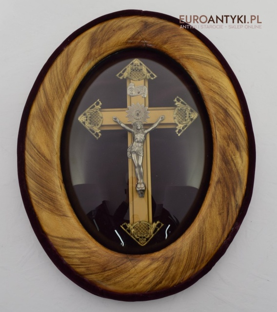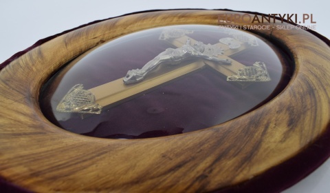 Owalny obraz krzyż pod szkłem z połowy XX wieku.