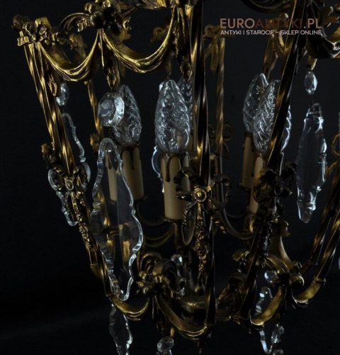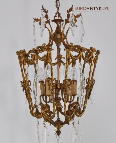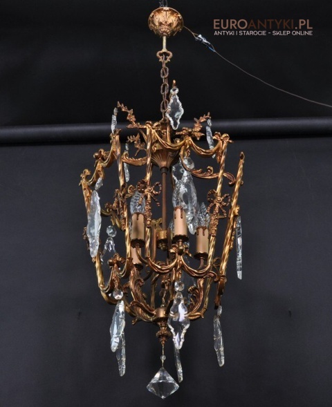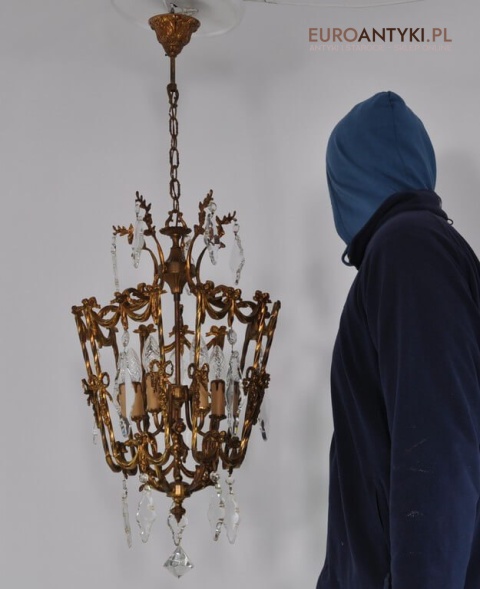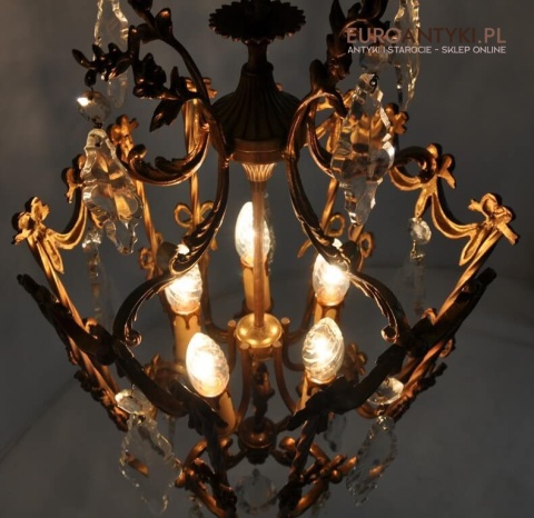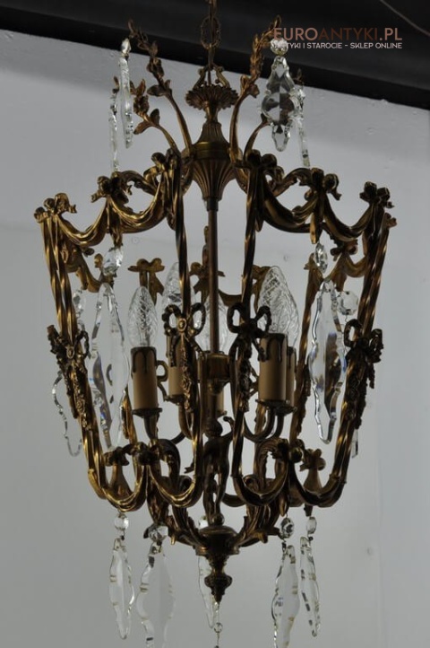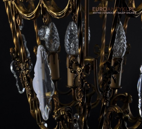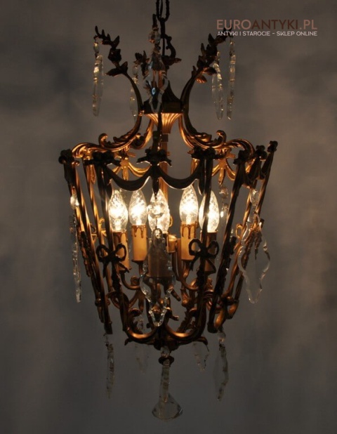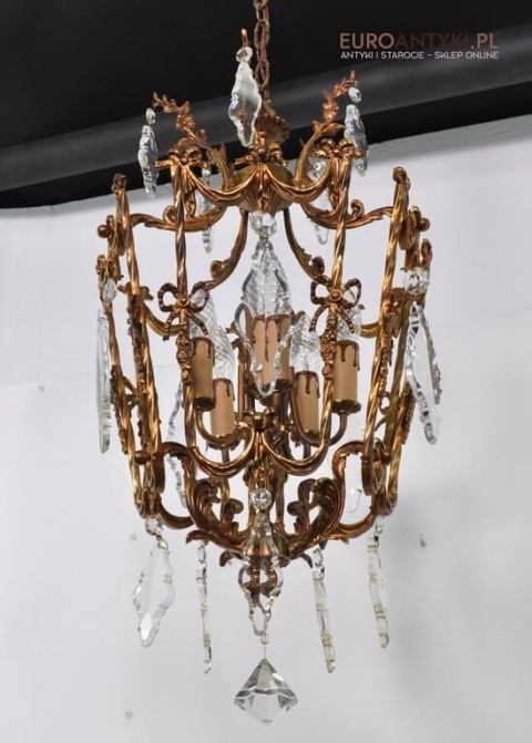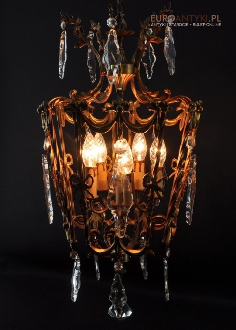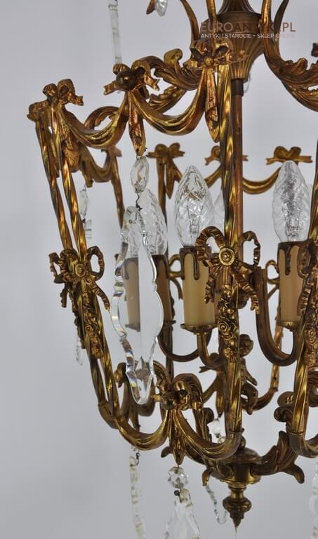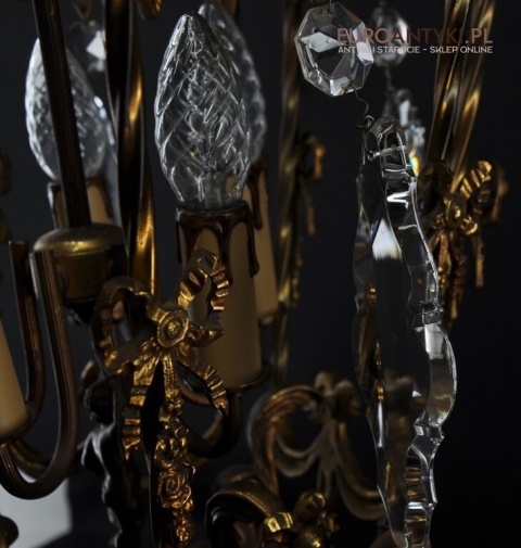 Pałacowa lampa w stylu Ludwik XV. Lampa z kokardami i kryształami. EKSKLUZYWNA!!! Antyk.