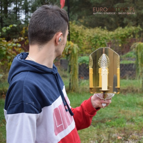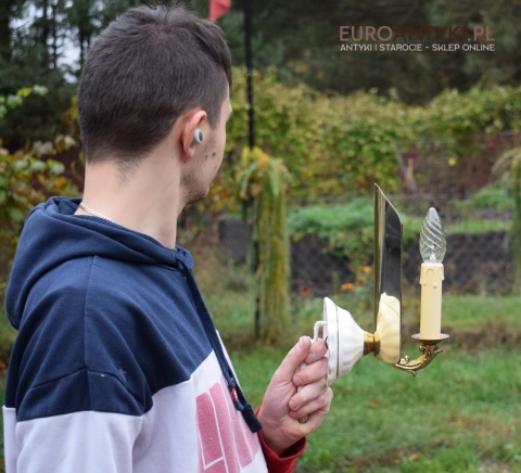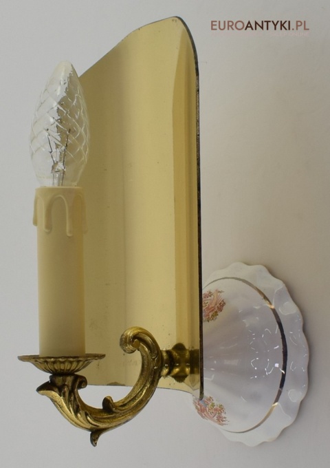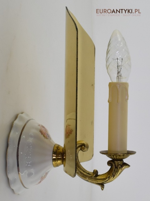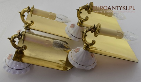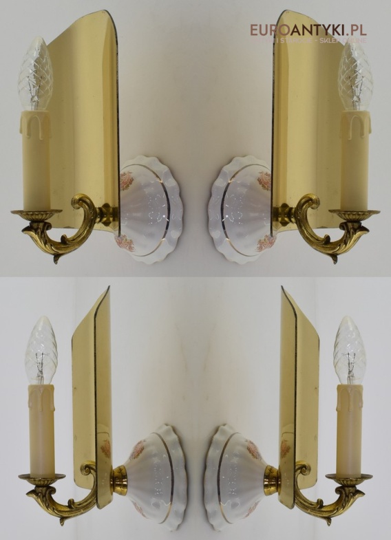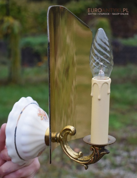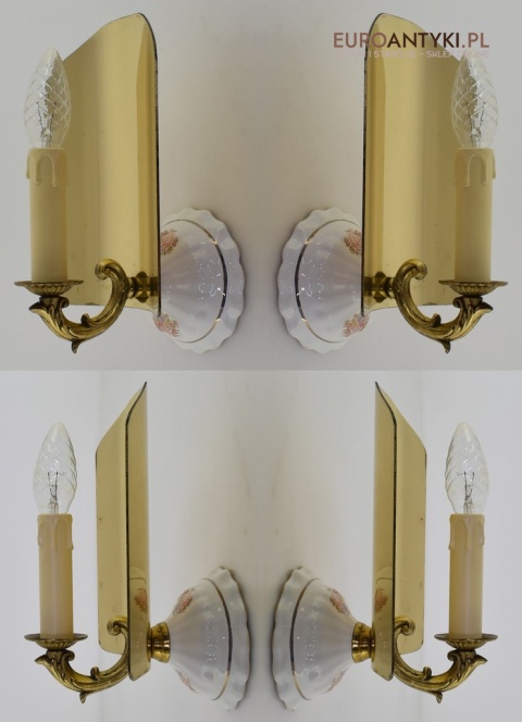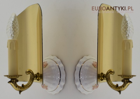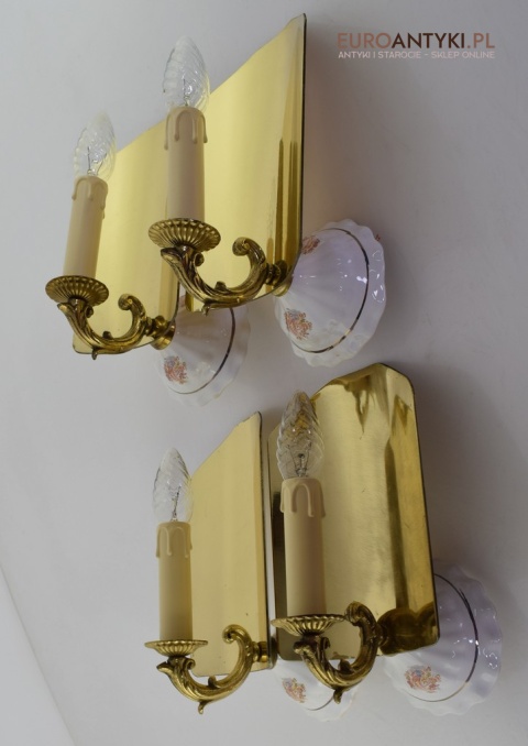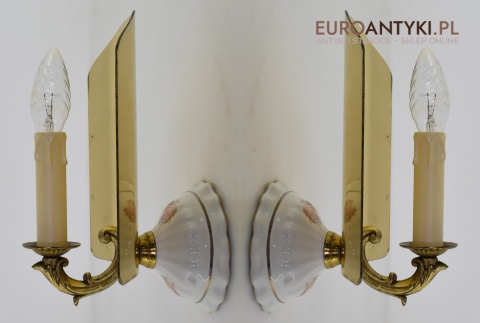 Pałacowe kinkiety antyczne z mosiądzu i ceramiki.