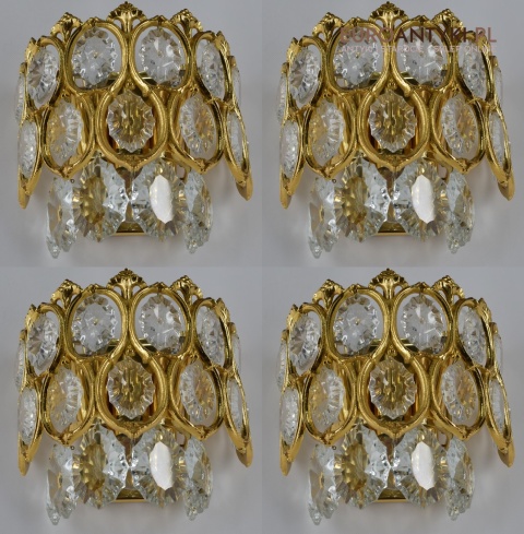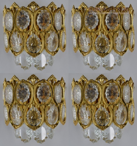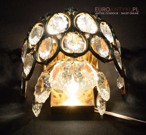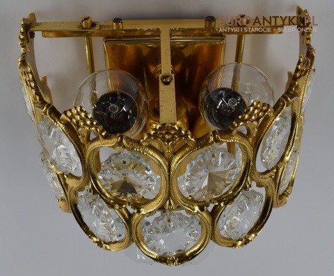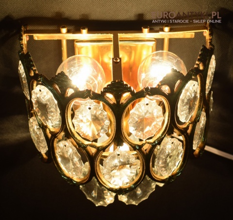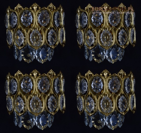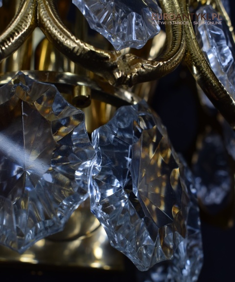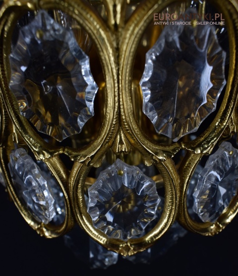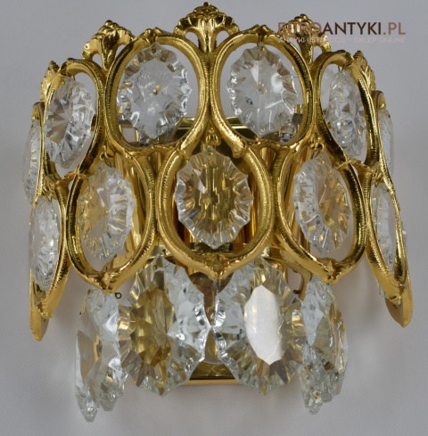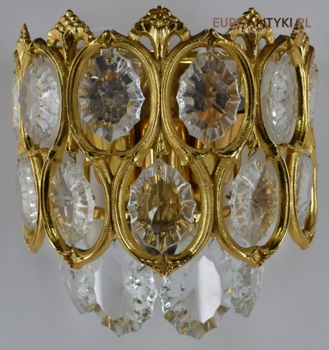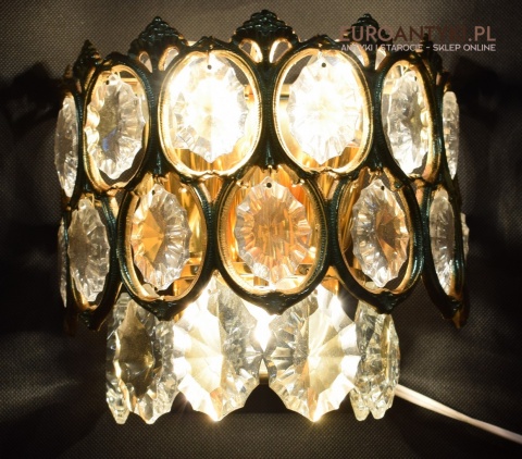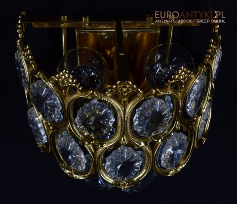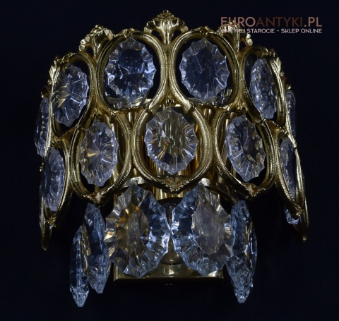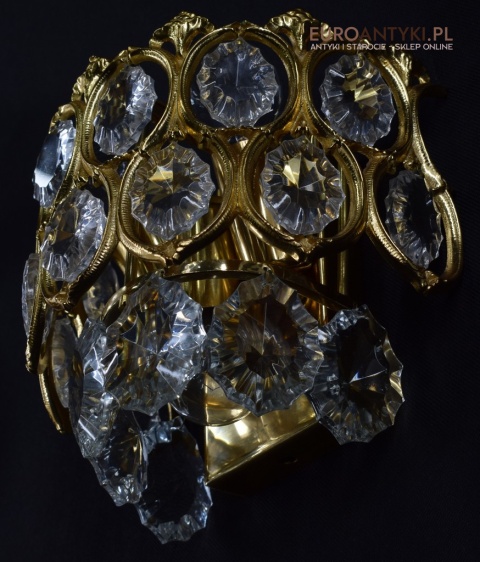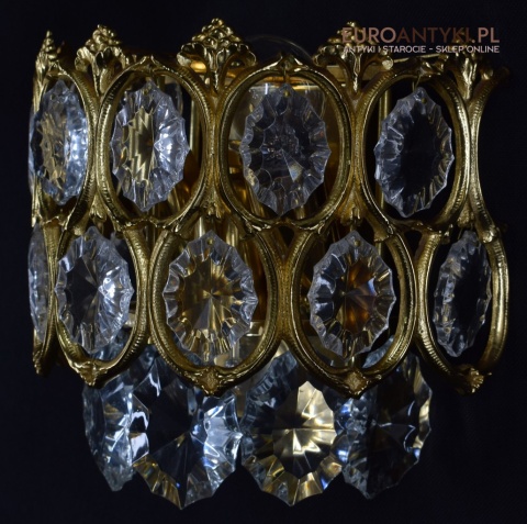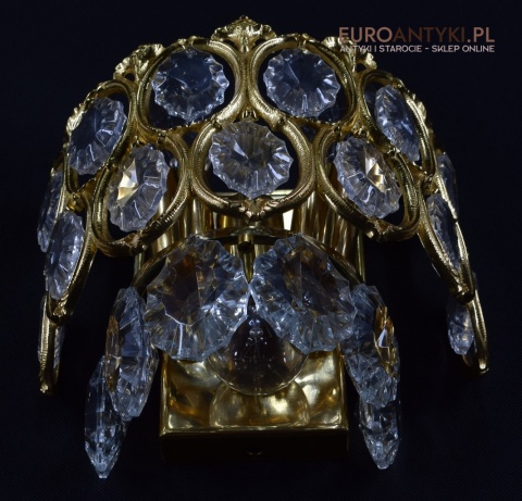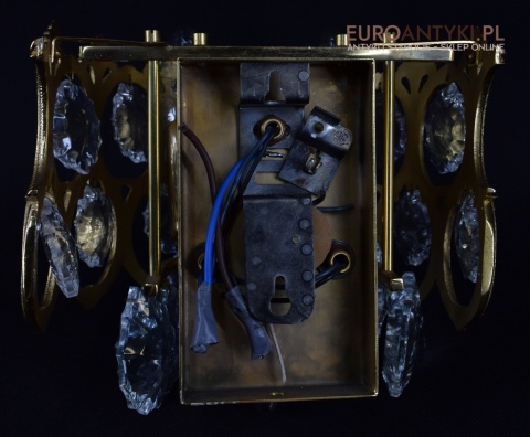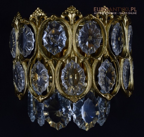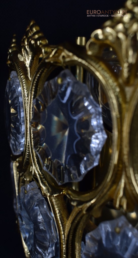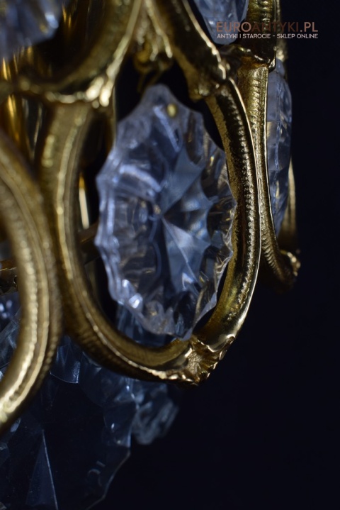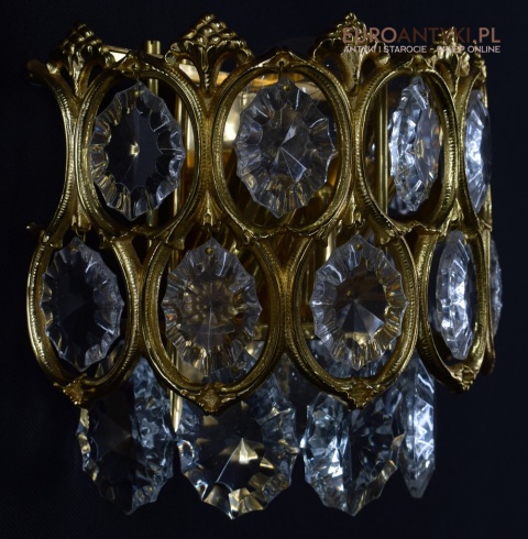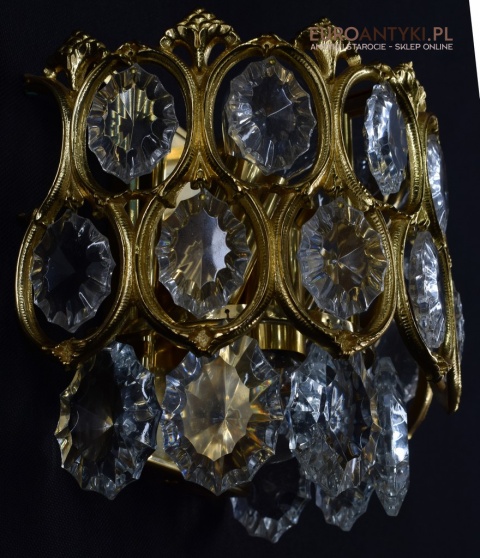 Pałacowe kinkiety pozłacane z kryształami. Antyczne lampy ścienne.