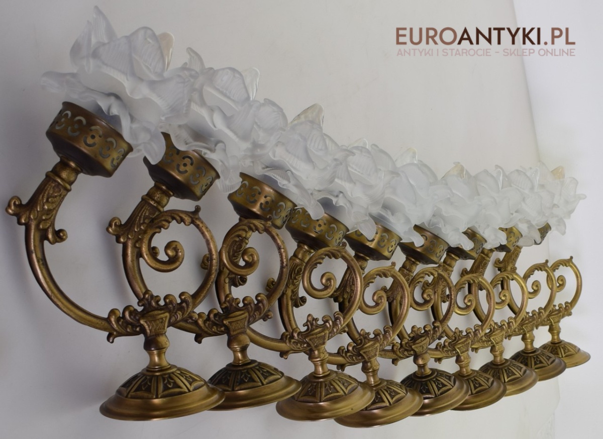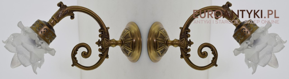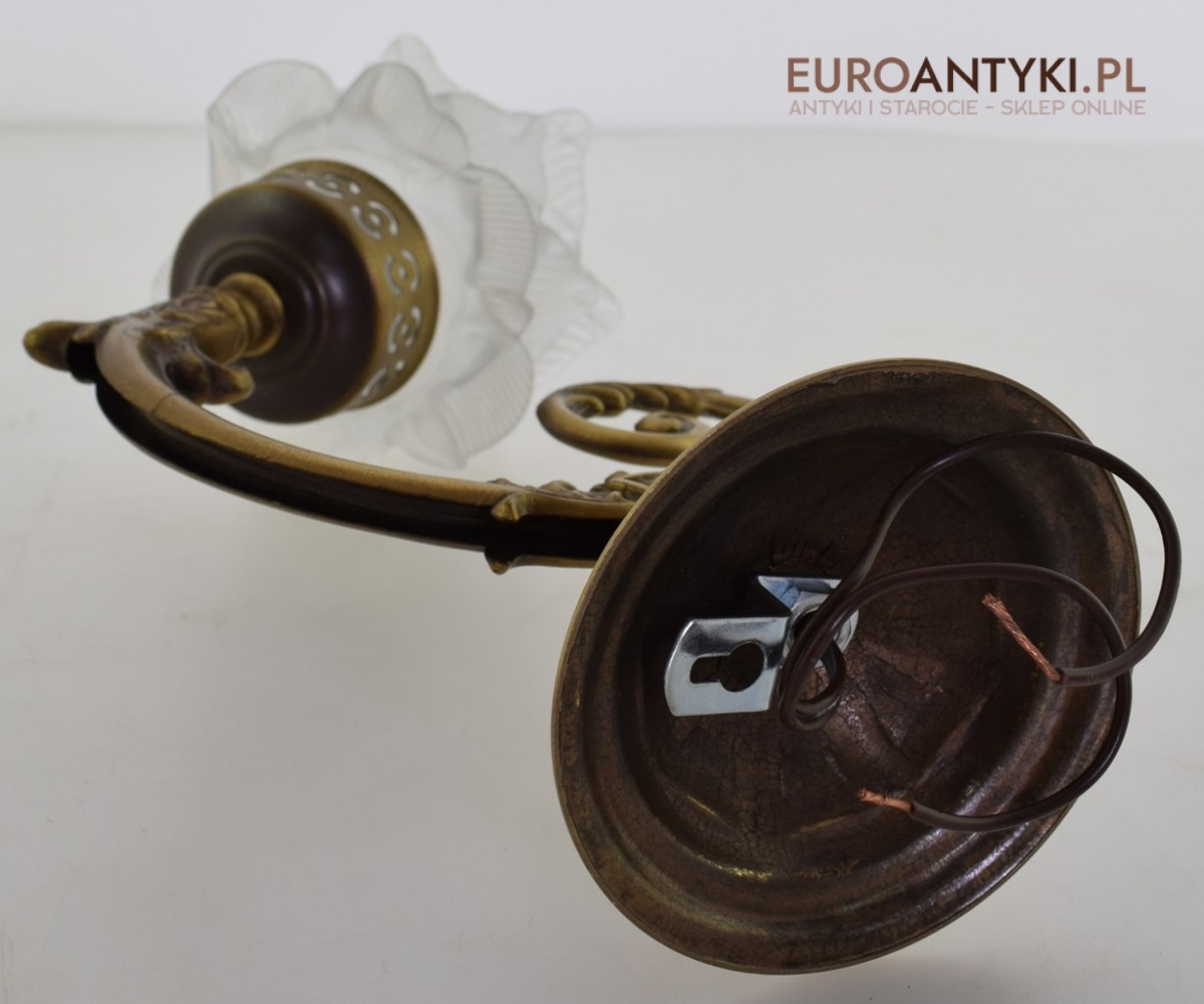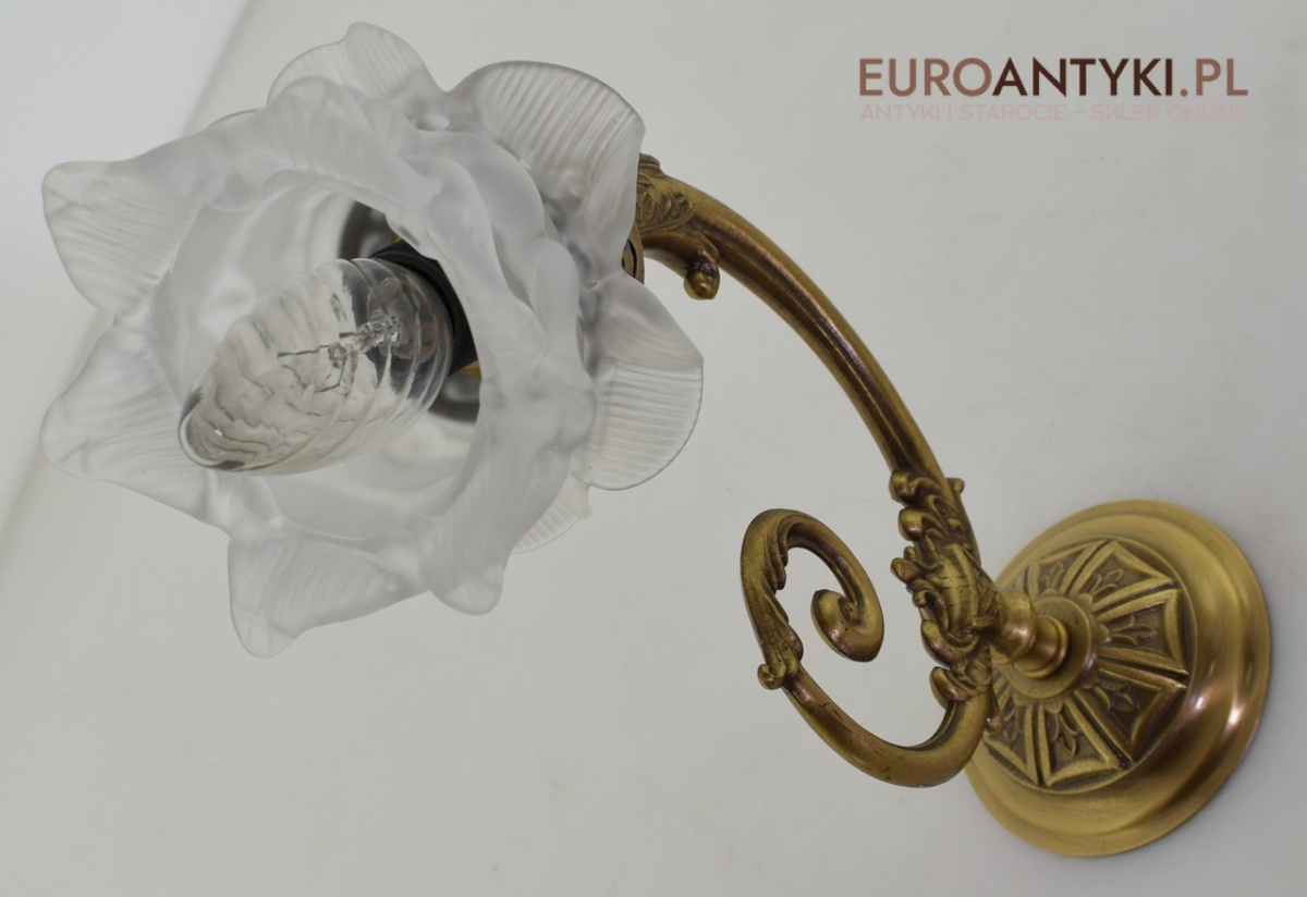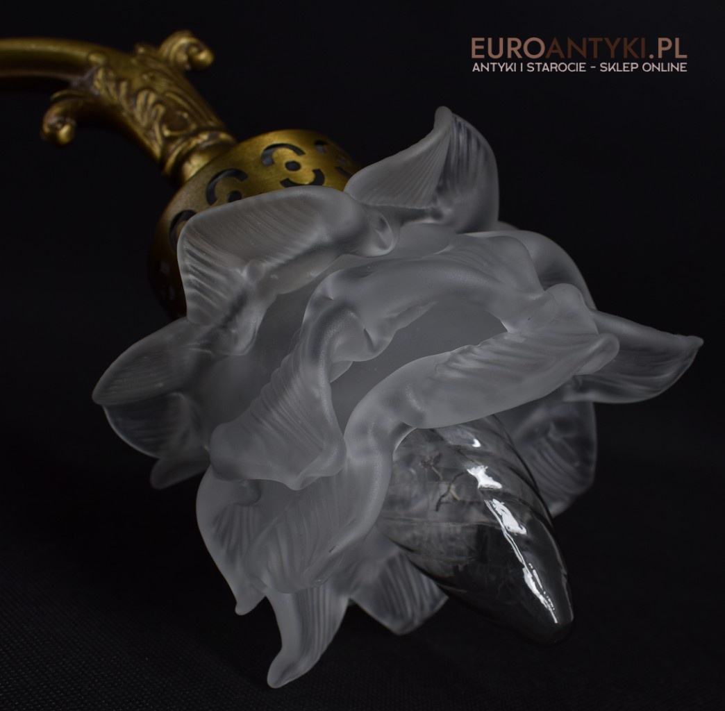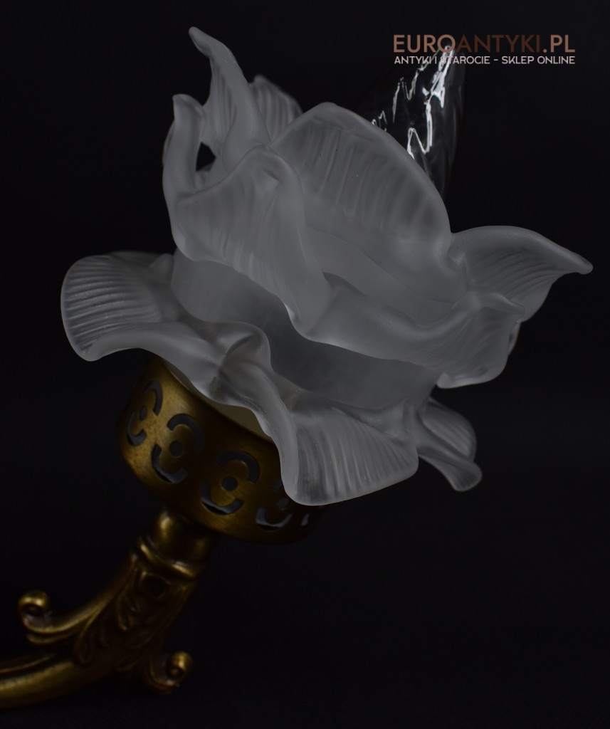Oryginalne szklane masywne klosze w formie kielicha kwiatowego. Kinkiety pochodzą z lat 1960-70. Sprowadzone z Austrii.
