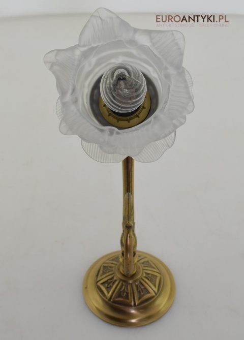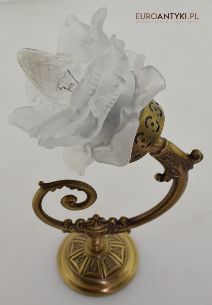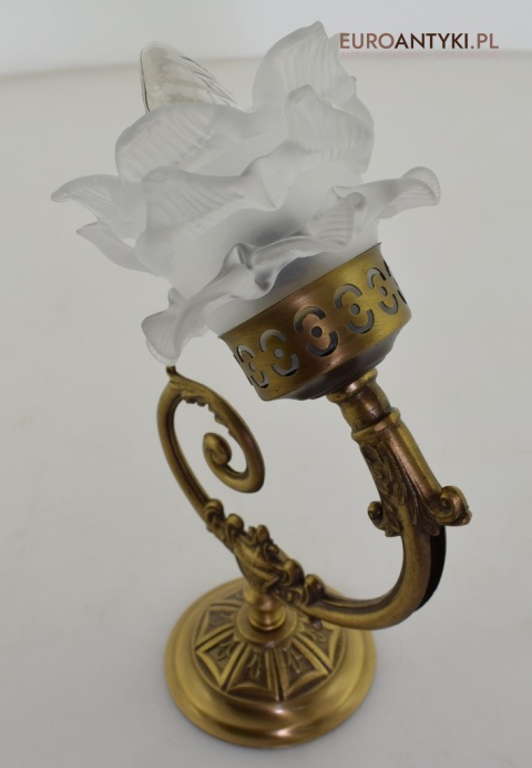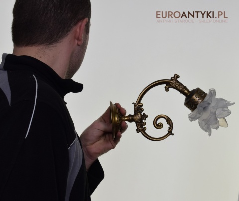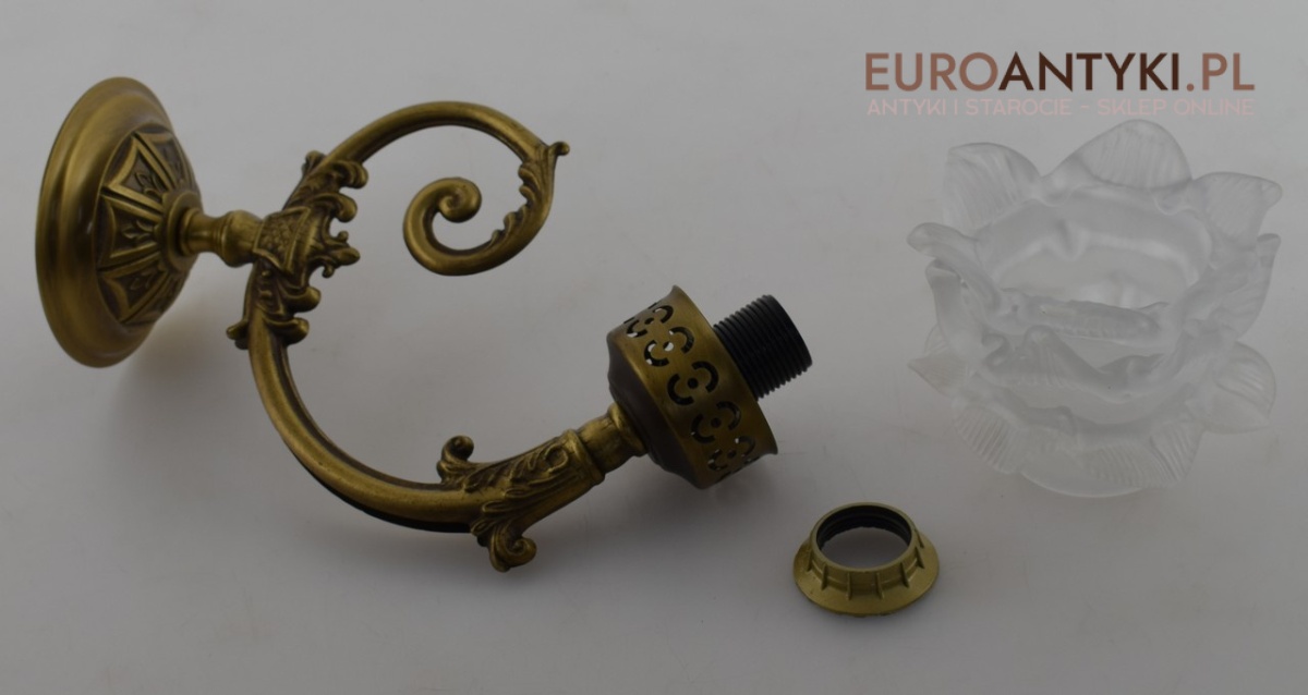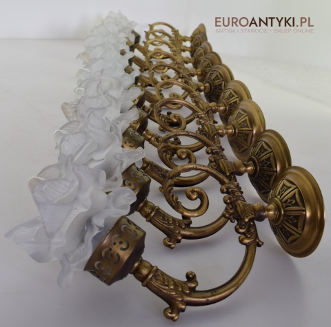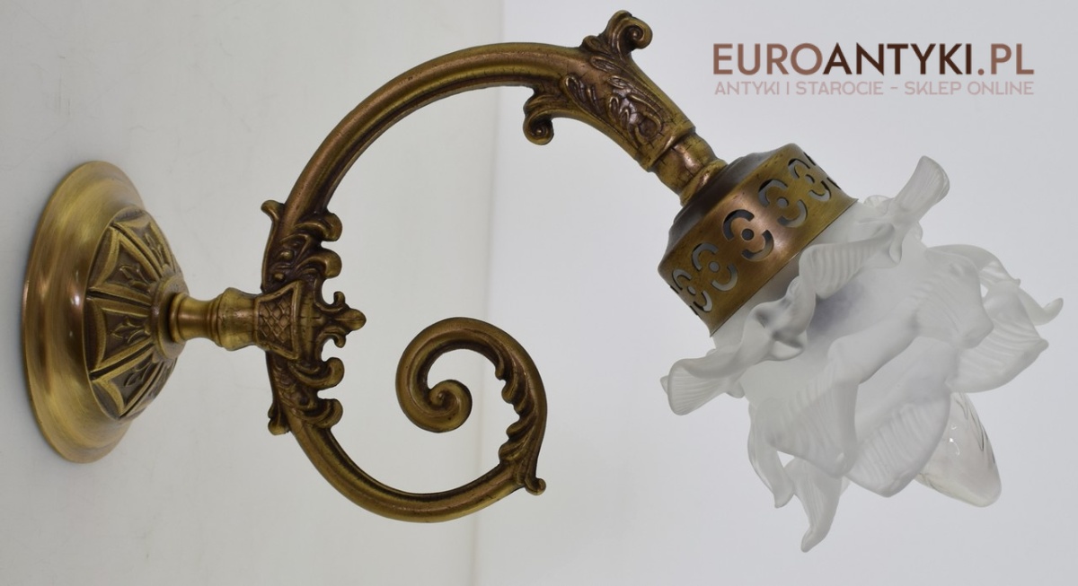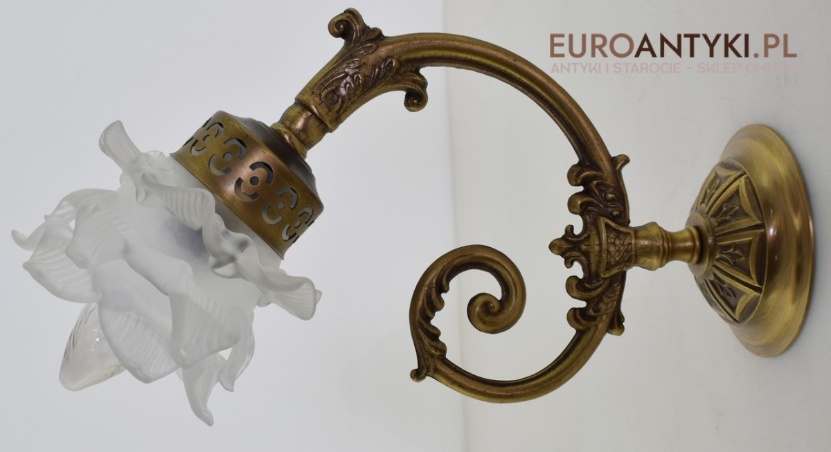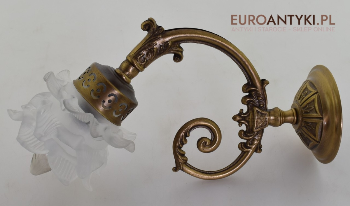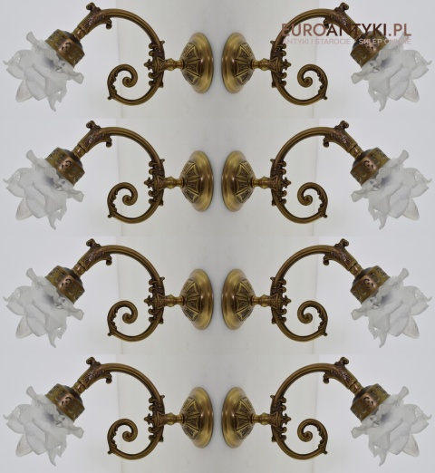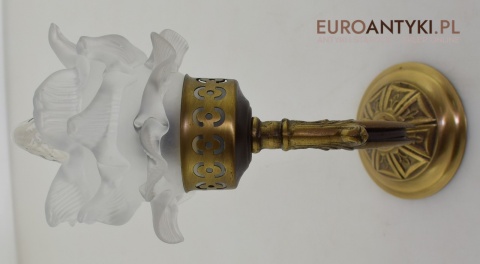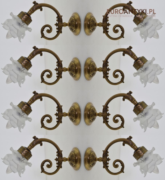 Oryginalne szklane masywne klosze w formie kielicha kwiatowego. Kinkiety pochodzą z lat 1960-70. Sprowadzone z Austrii.